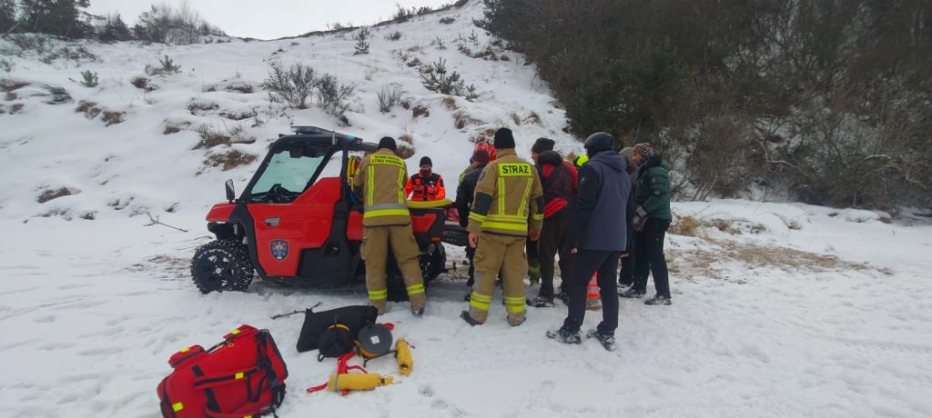 Mężczyzna został zabezpieczony na desce ortopedycznej, a następnie przetransportowany pojazdem typu buggy do miejsca, w którym znajdował się zespół ratownictwa medycznego. Po przekazaniu poszkodowanego ratownikom medycznym został on przetransportowany karetką do szpitala w Wejherowie.