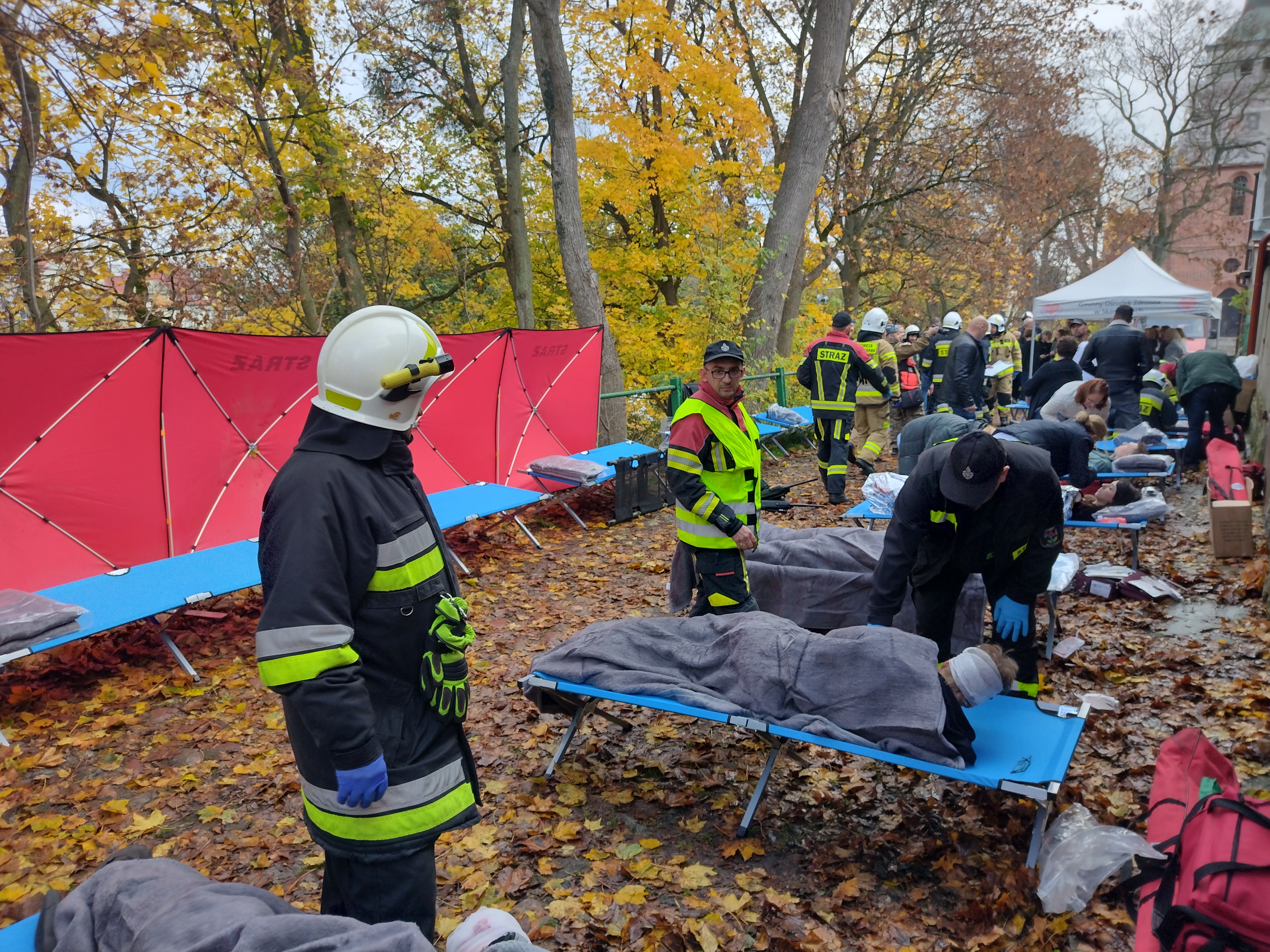 W akcji w Skarszewach wzięło udział prawie stu funkcjonariuszy policji i straży pożarnej, a także ratowników medycznych i przedstawicieli Specjalnych Grup Operacyjnych. Mundurowi wraz z pracownikami urzędu miejskiego, którzy dzień wcześniej odbyli odpowiednie szkolenie w Skarszewskim Centrum Sportu, mieli okazję sprawdzić swoje umiejętności w sytuacji zagrożenia terrorystycznego. Na miejscu zorganizowano też szpital polowy.