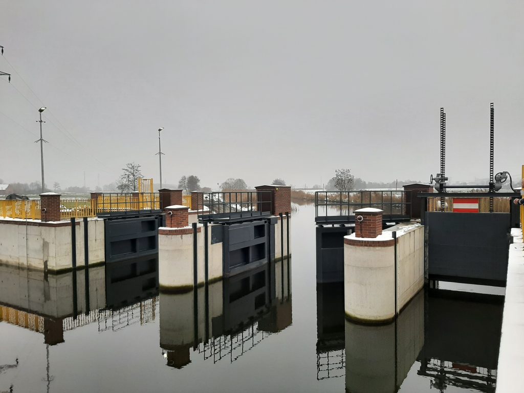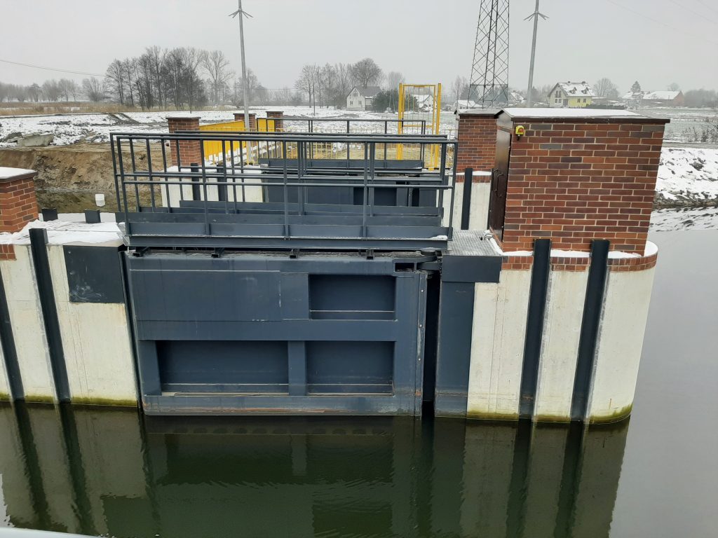 – Stalowe wrota są dwuskrzydłowe na konstrukcji żelbetowej. Zamykają się 24 minuty. W razie potrzeby dodatkowe przepusty będą odprowadzały nadmiar wody do Szkarpawy – wyjaśnia Woś.
