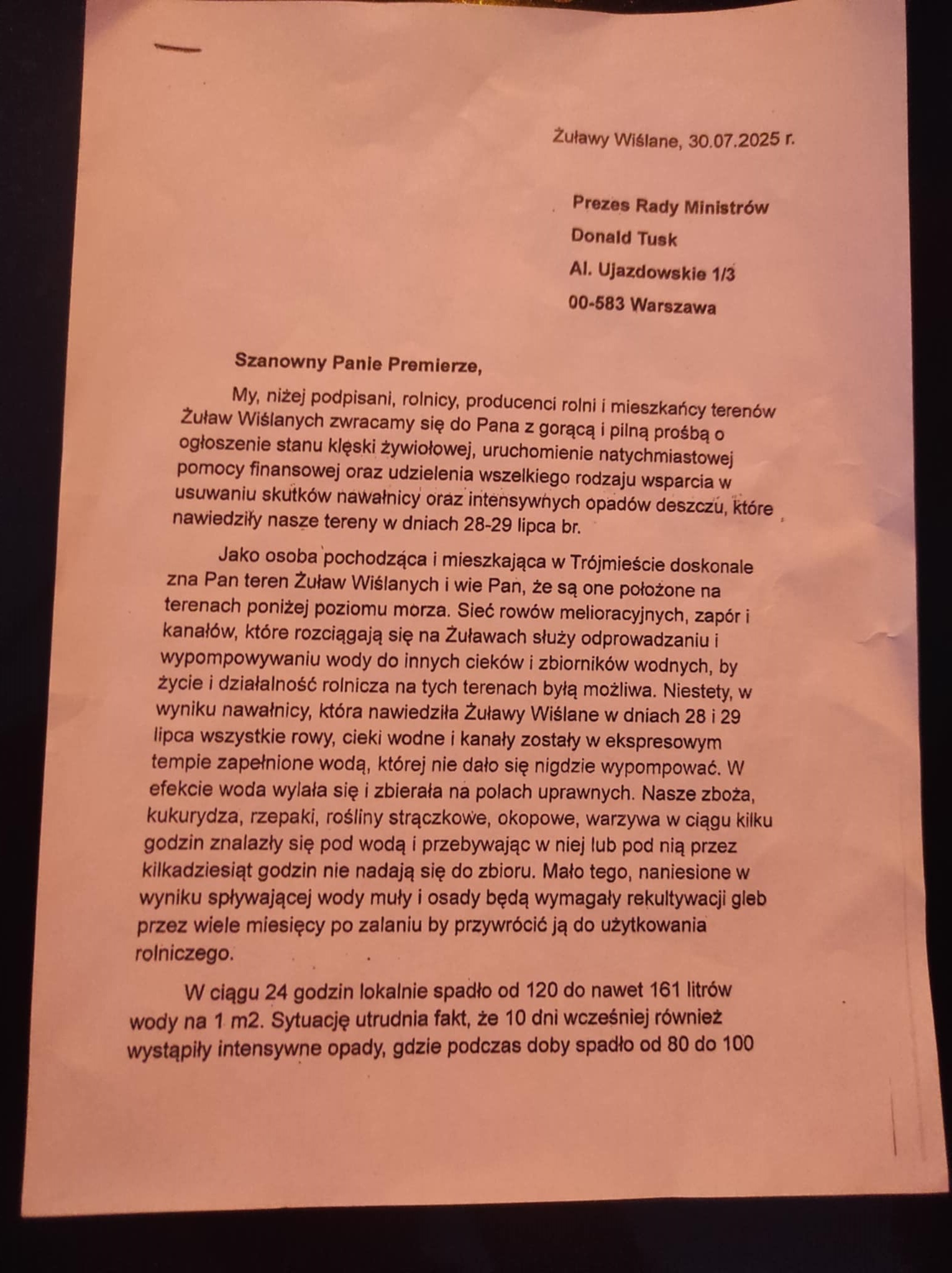 Żuławscy rolnicy wystosowali wniosek do premiera rządu Donalda Tuska oraz do wojewody pomorskiej Beaty Rutkiewicz o ogłoszenie na terenie Żuław Wiślanych stanu klęski żywiołowej.