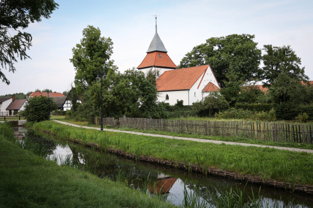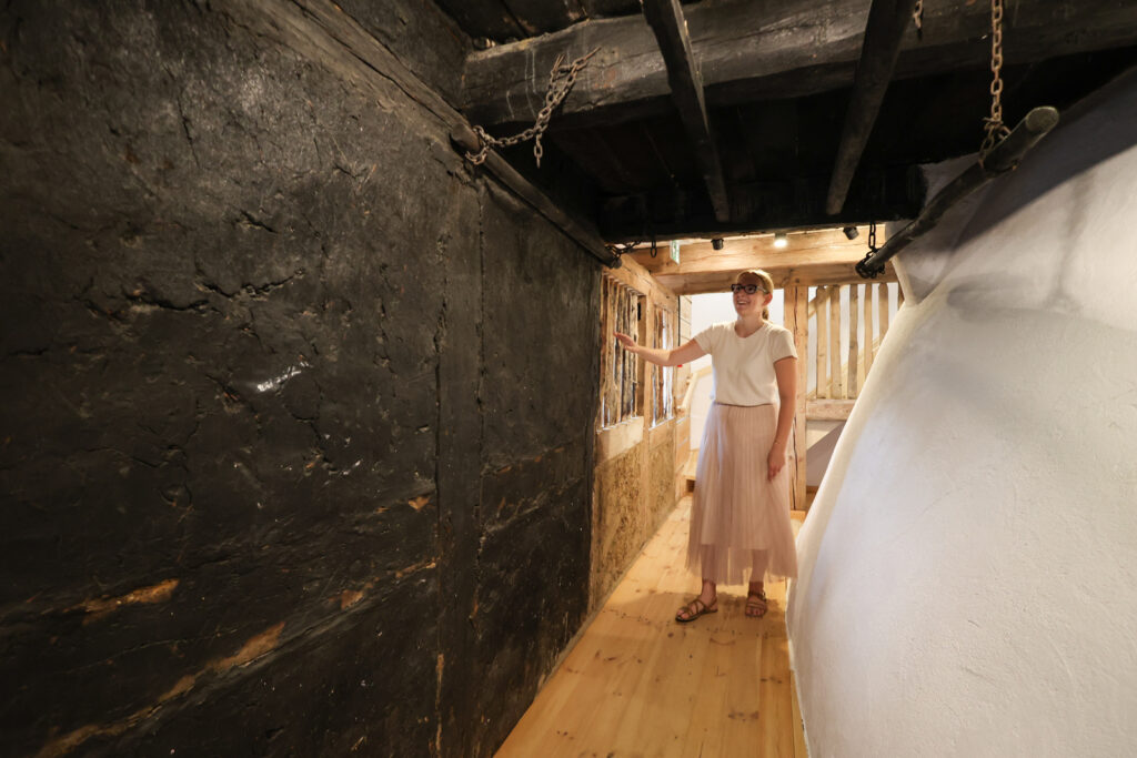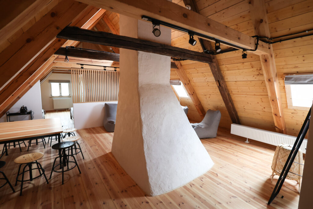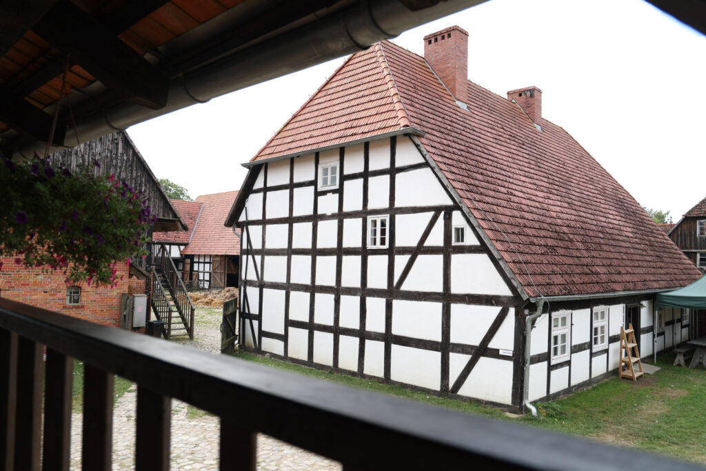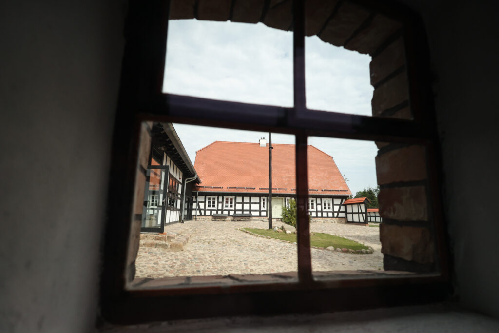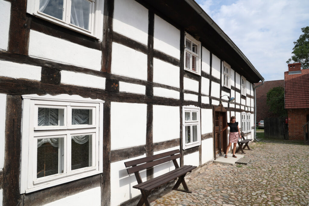 – „Kraina w Kratę” jest przepięknym terenem, ma około 80 kilometrów. Rozciąga się od Łeby do Darłowa. Jesteśmy w jej samym sercu. Budynki o zabudowie szachulcowej są tak charakterystyczne ze względu na swoją barwę. Kiedyś budowano je w oparciu o naturalne wyroby, dlatego też czarne belki były malowane smołą, a kwatery bielono wapnem. Do dzisiaj staramy się uzyskać ten sam wizerunek tych budynków. Znajdujemy się w Zagrodzie nr 5, która wchodzi w skład projektu, który miał na celu rewitalizację budynków szkieletowych oraz restaurację organów kościelnych – zaznaczyła.