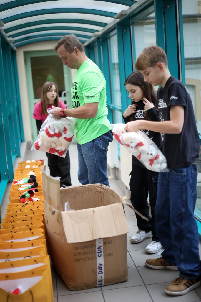 W paczkach znajdują się puzzle, pluszaki, napoje, kubki oraz oczywiście słodycze. Upominki są różnorodne, kolorowe i na pewno wywołają uśmiech na twarzach najmłodszych podczas pobytu w szpitalu.