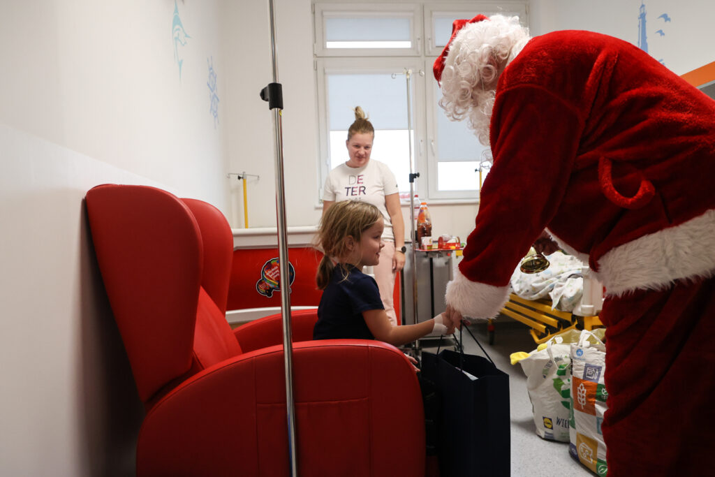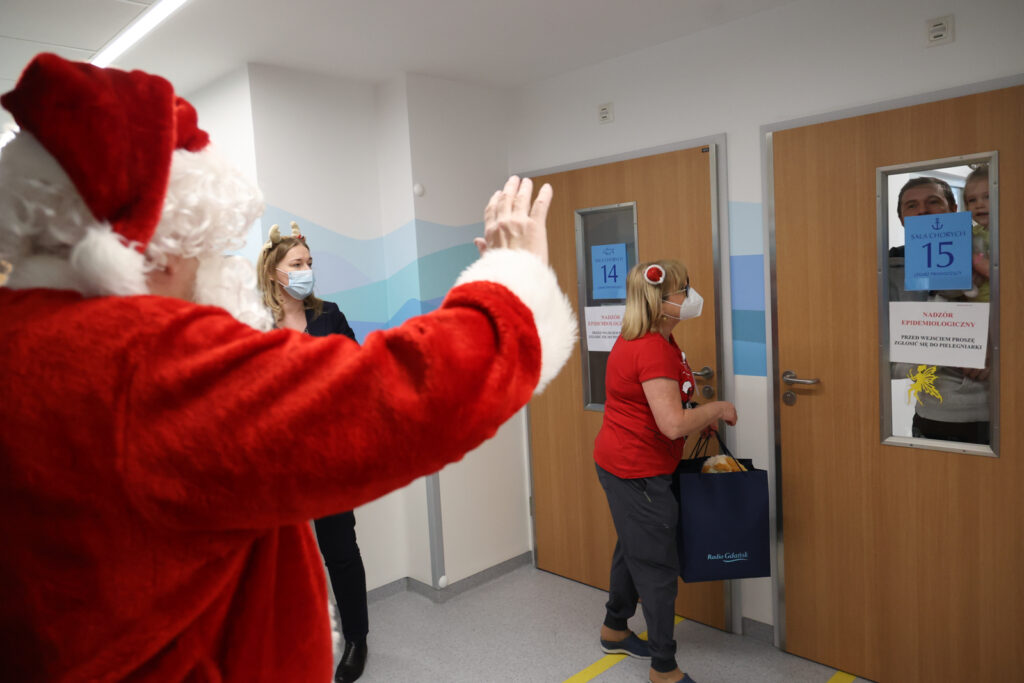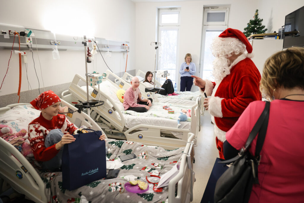 Po godz. 12:00 nasz radiowy Mikołaj dotarł do Kliniki Pediatrii, Hematologii i Onkologii. Tam Tatiana Slowi spotkała się z lekarzem Marcinem Hennigiem oraz Patrycją Koszewską, nauczycielką ze Szkoły Podstawowej nr 90 w Gdańsku. Jak podkreślali, w obecnym okresie personel stara się wprowadzić na oddziale świąteczną atmosferę i uśmiech.