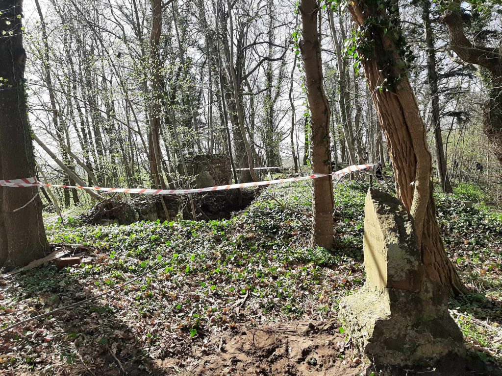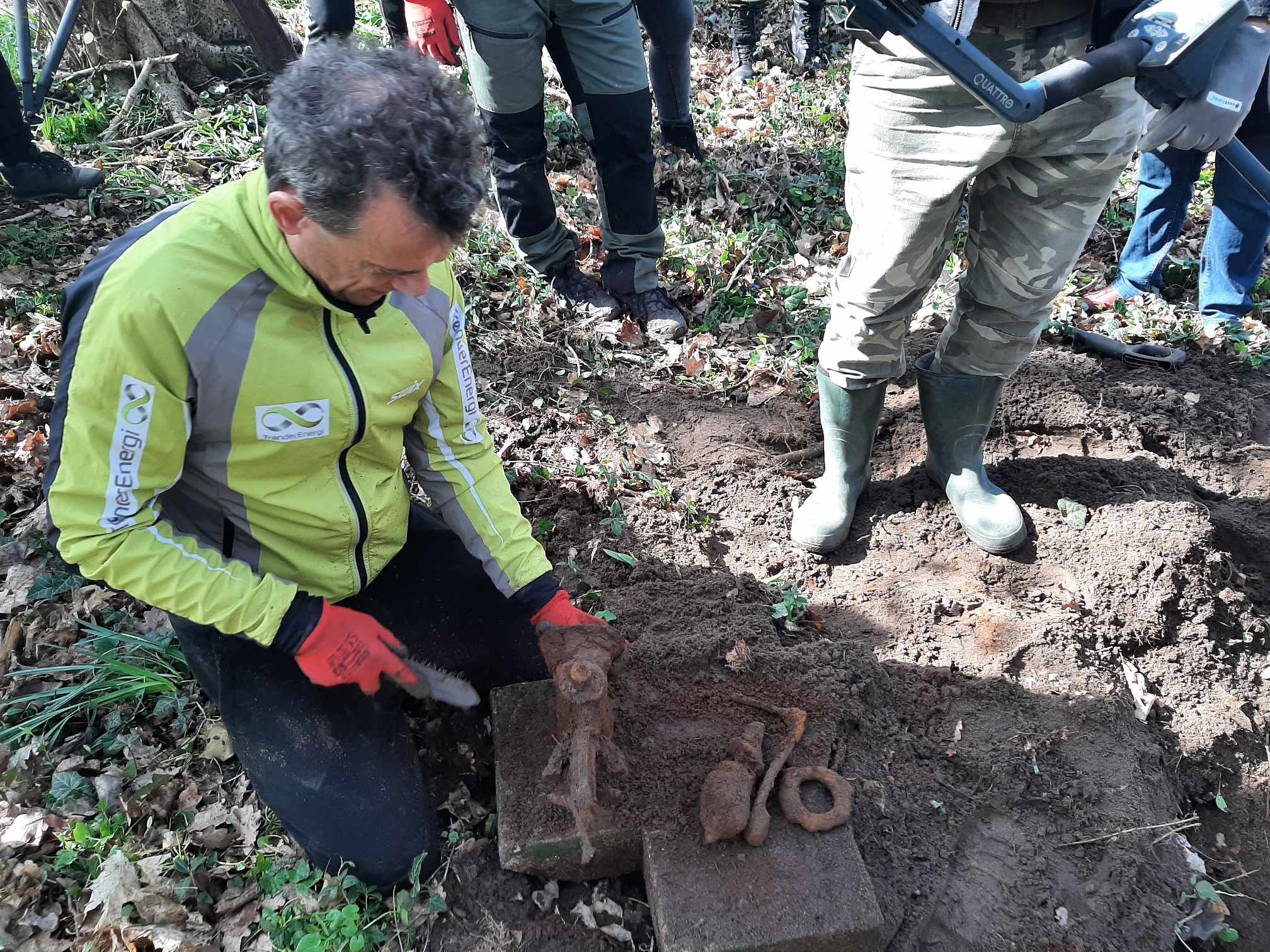 Ochotnicy posprzątali zapomnianą nekropolię w Żelazie i znaleźli schowek z 1945 roku