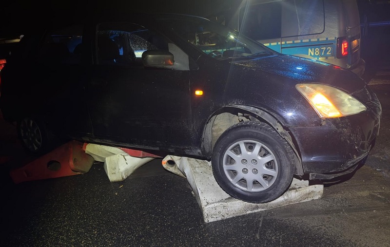 W nocy policjanci interweniowali na drodze DK6 pomiędzy Mostami i Lęborkiem, gdzie wg zgłoszenia najprawdopodobniej pijany kierowca hondy uszkodził oznakowanie tymczasowego ronda. Na miejscu policjanci potwierdzili treść zgłoszenia. Honda najechała na plastikowe elementy ronda i zawinęła na nich. W aucie siedział 39-letni obywatel Ukrainy, zamieszkały w powiecie kartuskim, od którego czuć było alkohol.