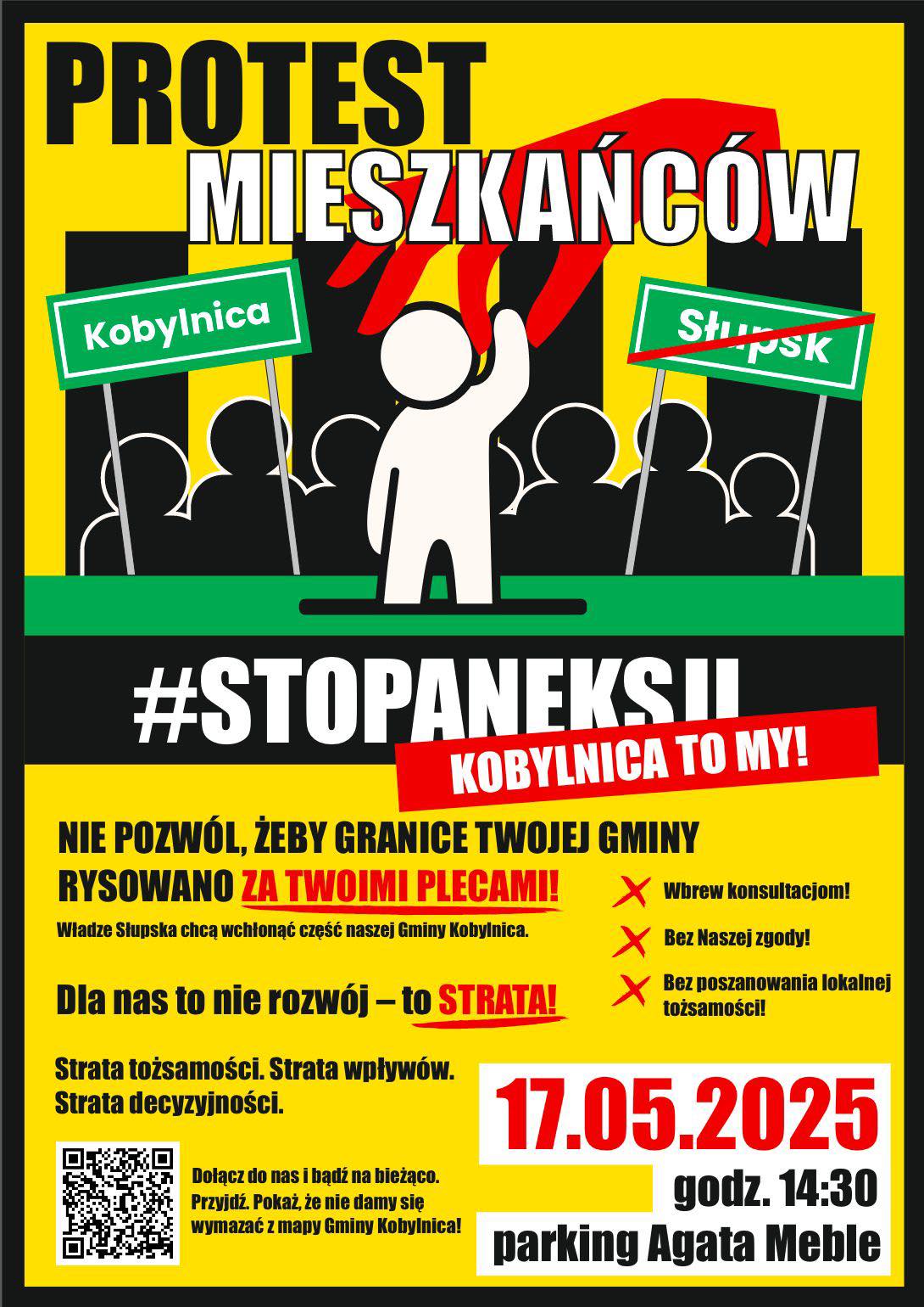 „Nie pozwól, żeby granice twojej gminy rysowano za twoimi plecami” – to hasło protestu zaplanowanego na sobotę, 17 maja, tuż przed wyborami prezydenckimi. Mieszkańcy Kobylnicy chcą wyrazić swój sprzeciw wobec opinii wojewody pomorskiej ws. przyłączenia części ich gminy do Słupska.