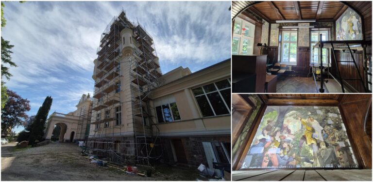 – Wymagają naprawdę niewielkich poprawek. Największy obraz to „Śpiąca Królewna”. Udało nam się odnaleźć książkę, która była inspiracją dla tych malowideł. Prawdopodobnie właściciel pałacu polecił wymalować te obrazy dla swoich dzieci – być może to był ich pokój. Potem malowidła z bajek przykryto obrazami o tematyce myśliwskiej. Po renowacji będą widoczne wszystkie – wyjaśnia.