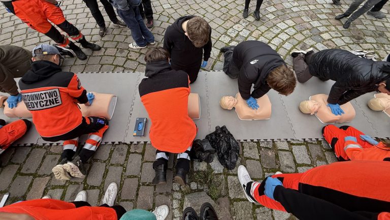 – To bardzo ważne aby niezależnie od wieku wiedzieć co robić w sytuacji kiedy zasłabnie ktoś na naszych oczach, trzeba poradzić sobie ze stresem i poznać prosty schemat. Dziś w przywróceniu krążenia pomaga także technologia, systemy AED wiszą w szkołach, instytucjach a nawet sklepach. Wystarczy zdjąć urządzenie i postępować zgodnie z wydawanymi przez nie komendami – mówi Daniel Herner, student ratownictwa medycznego.