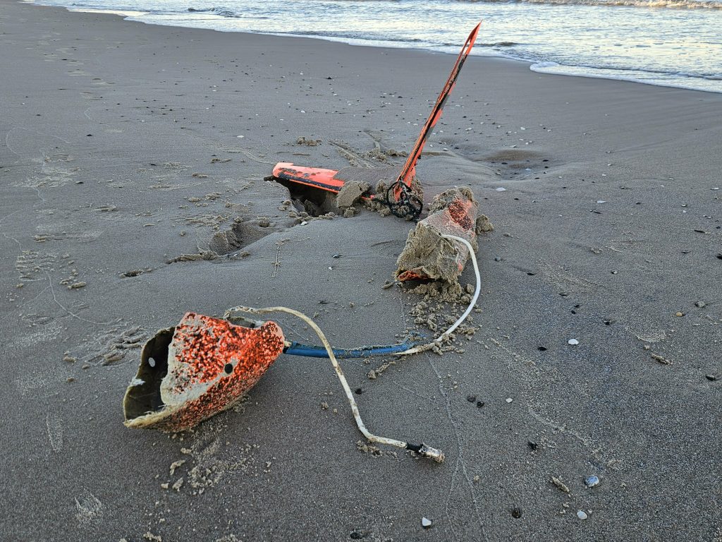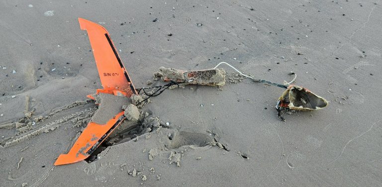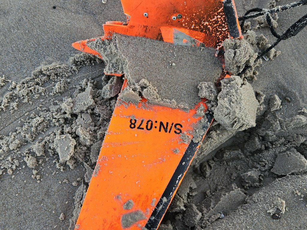 Na plaży wschodniej w Ustce w sobotę, 1 listopada, około godziny 8:00 jeden ze spacerowiczów znalazł kilka metrów od brzegu morza pomarańczowego drona. Prawdopodobnie to sprzęt wojskowy. Straż Graniczna i policja zajęły się tą sprawą.