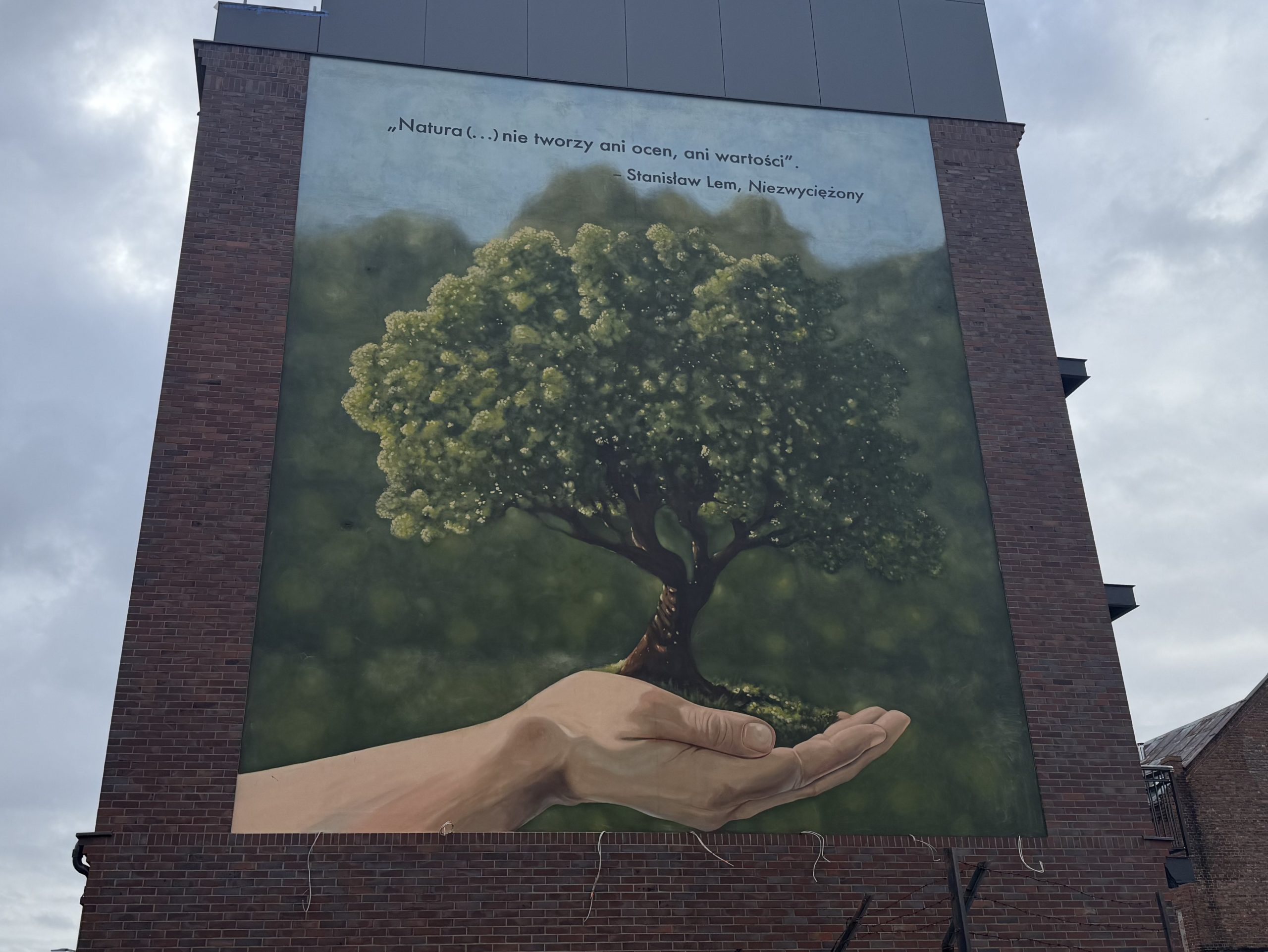 Nowy mural przedstawia dłoń trzymającą drzewo. Ma przypominać o istotnej roli, jaką pełni natura w życiu człowieka. Podpisano go cytatem z powieści „Niezwyciężony” Stanisława Lema: „Natura (…) nie tworzy ani ocen, ani wartości”.