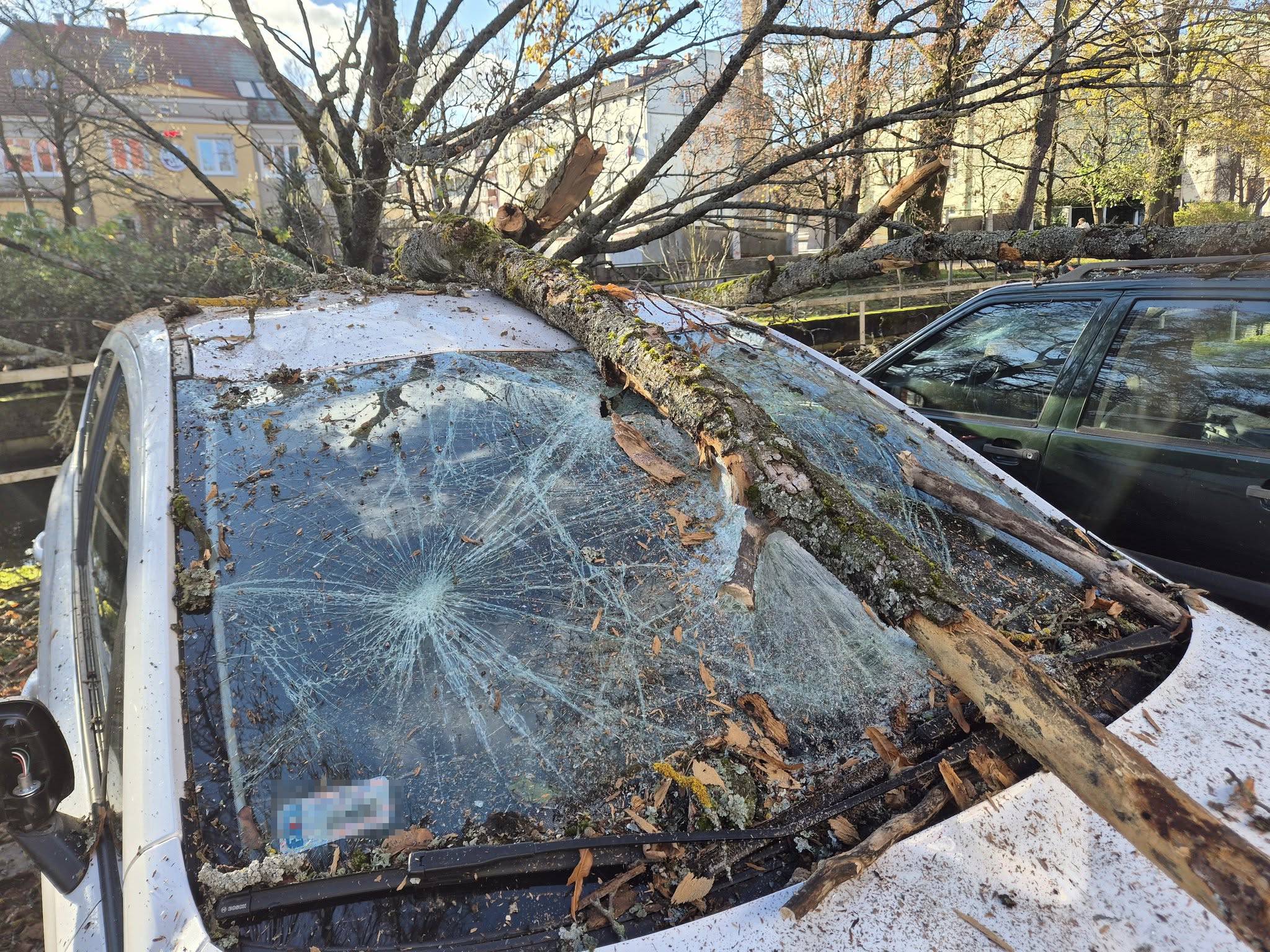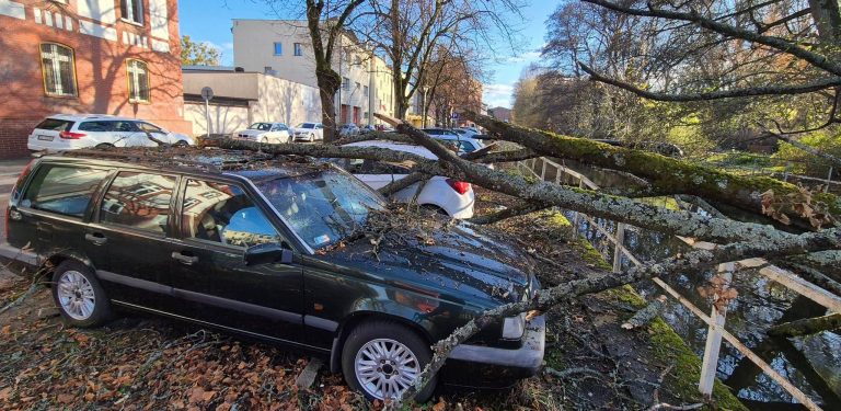 Słupsk: powalone drzewo uszkodziło dwa samochody na ul. Młyńskiej