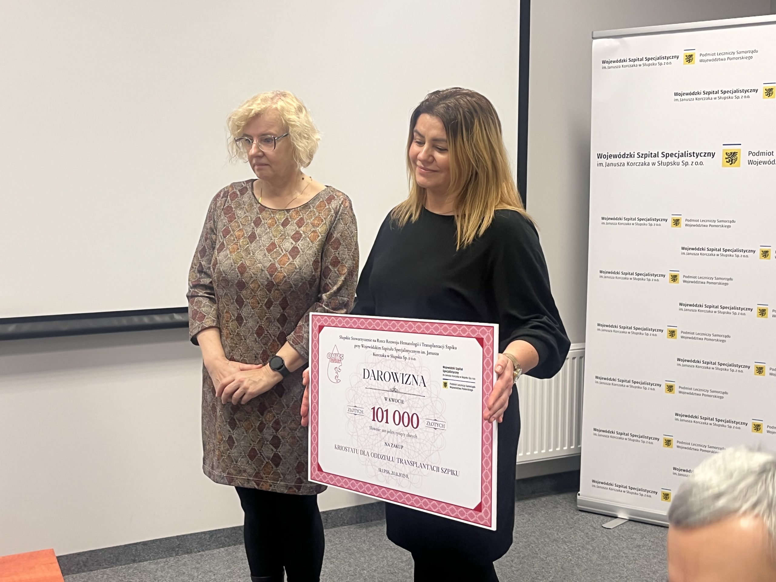 Słupskie Stowarzyszenie na Rzecz Rozwoju Hematologii i Transplantacji Szpiku przekazało 101 tysięcy złotych Oddziałowi Hematologicznemu Szpitala Wojewódzkiego w Słupsku. Środki pozwolą na zakup nowoczesnego kriostatu – specjalistycznego urządzenia niezbędnego w procesie mrożenia komórek macierzystych.