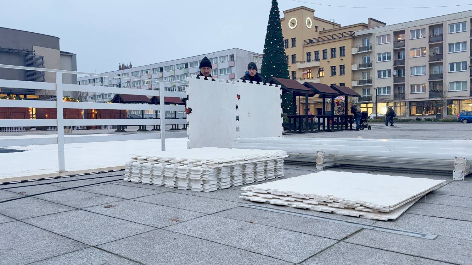Od środy pracownicy prywatnej firmy w pocie czoła składali lodowisko, aby zdążyć na piątkowe otwarcie. Dziś, przy pomocy pił do cięcia metalu i śrubokrętów, rozkręcają konstrukcję.