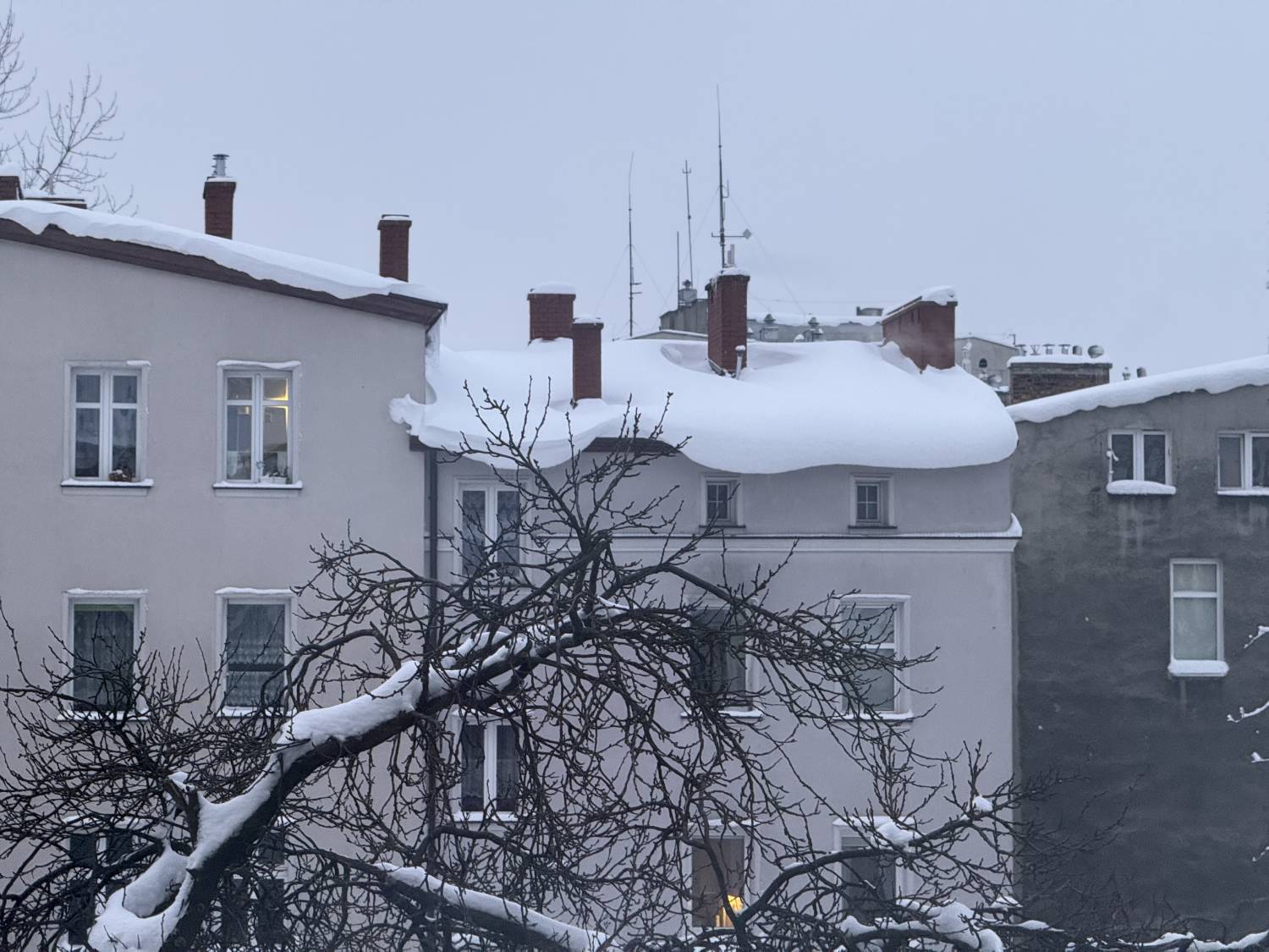Śnieg zalegający na dachu w Słupsku (fot. Radio Gdańsk/Łukasz Kosik)