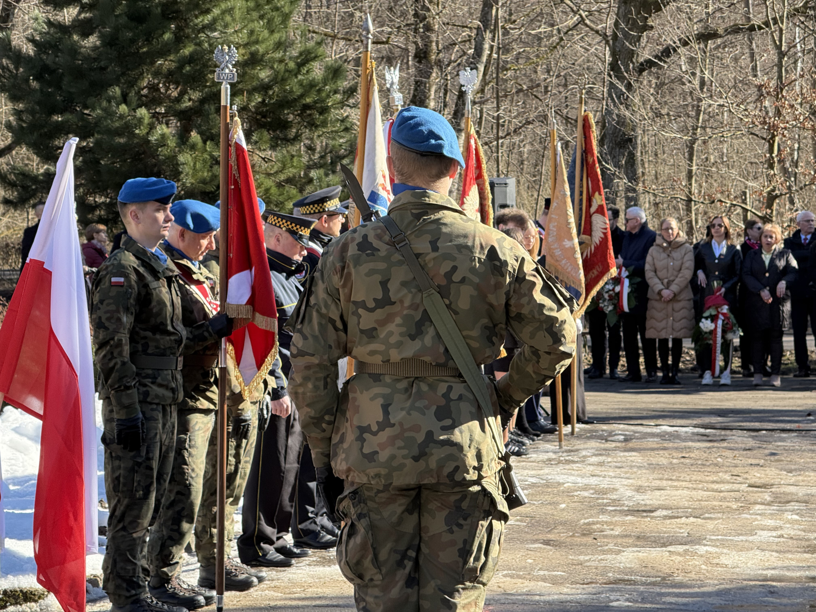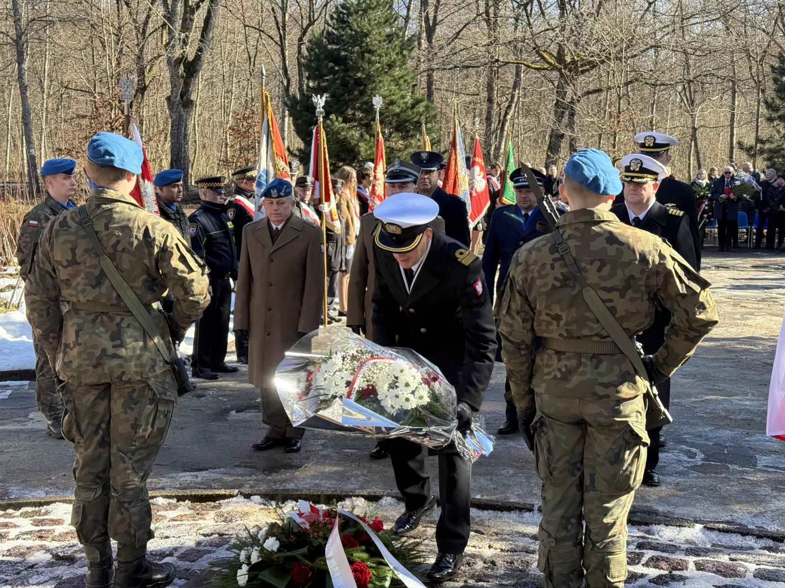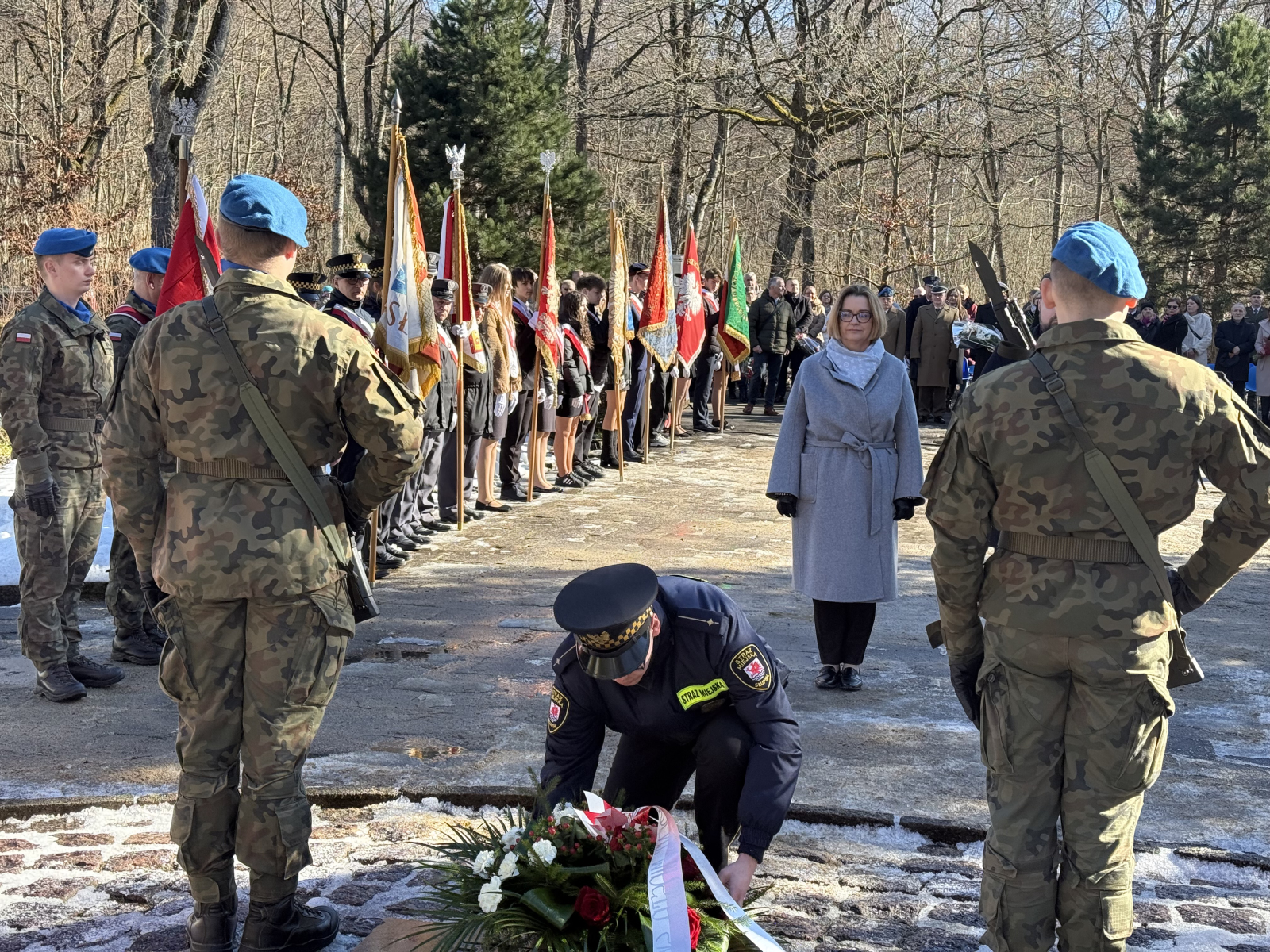 Przed pomnikiem pojawiło się również kilkanaście pocztów sztandarowych reprezentujących instytucje, organizacje kombatanckie, a także szkoły. W obchodach rocznicowych w Lasku Południowym wzięli udział samorządowcy i przedstawiciele służb mundurowych. Uroczystości zakończyły się odśpiewaniem polskiego hymnu i złożeniem kwiatów oraz wieńców.