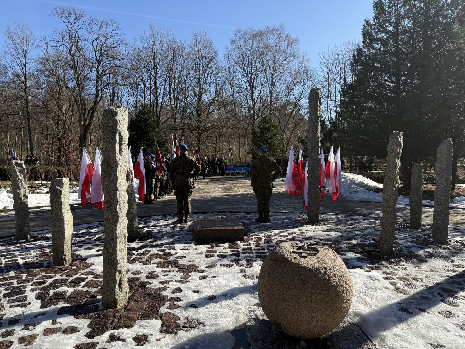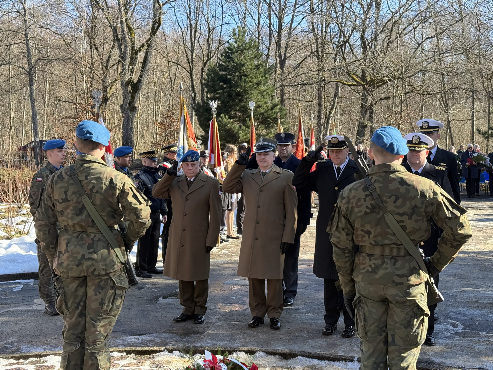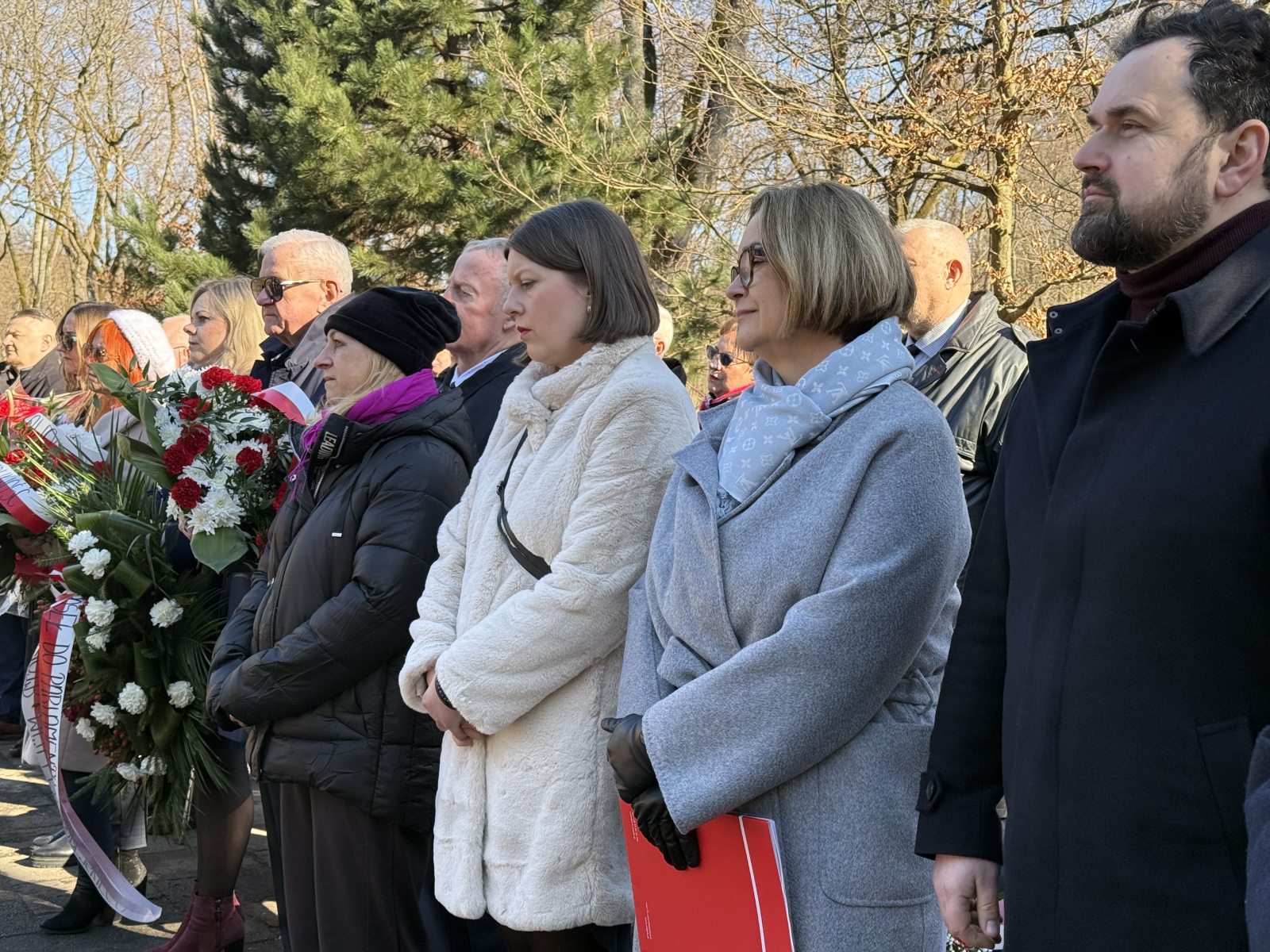 Przed pomnikiem pojawiło się również kilkanaście pocztów sztandarowych reprezentujących instytucje, organizacje kombatanckie, a także szkoły. W obchodach rocznicowych w Lasku Południowym wzięli udział samorządowcy i przedstawiciele służb mundurowych. Uroczystości zakończyły się odśpiewaniem polskiego hymnu i złożeniem kwiatów oraz wieńców.