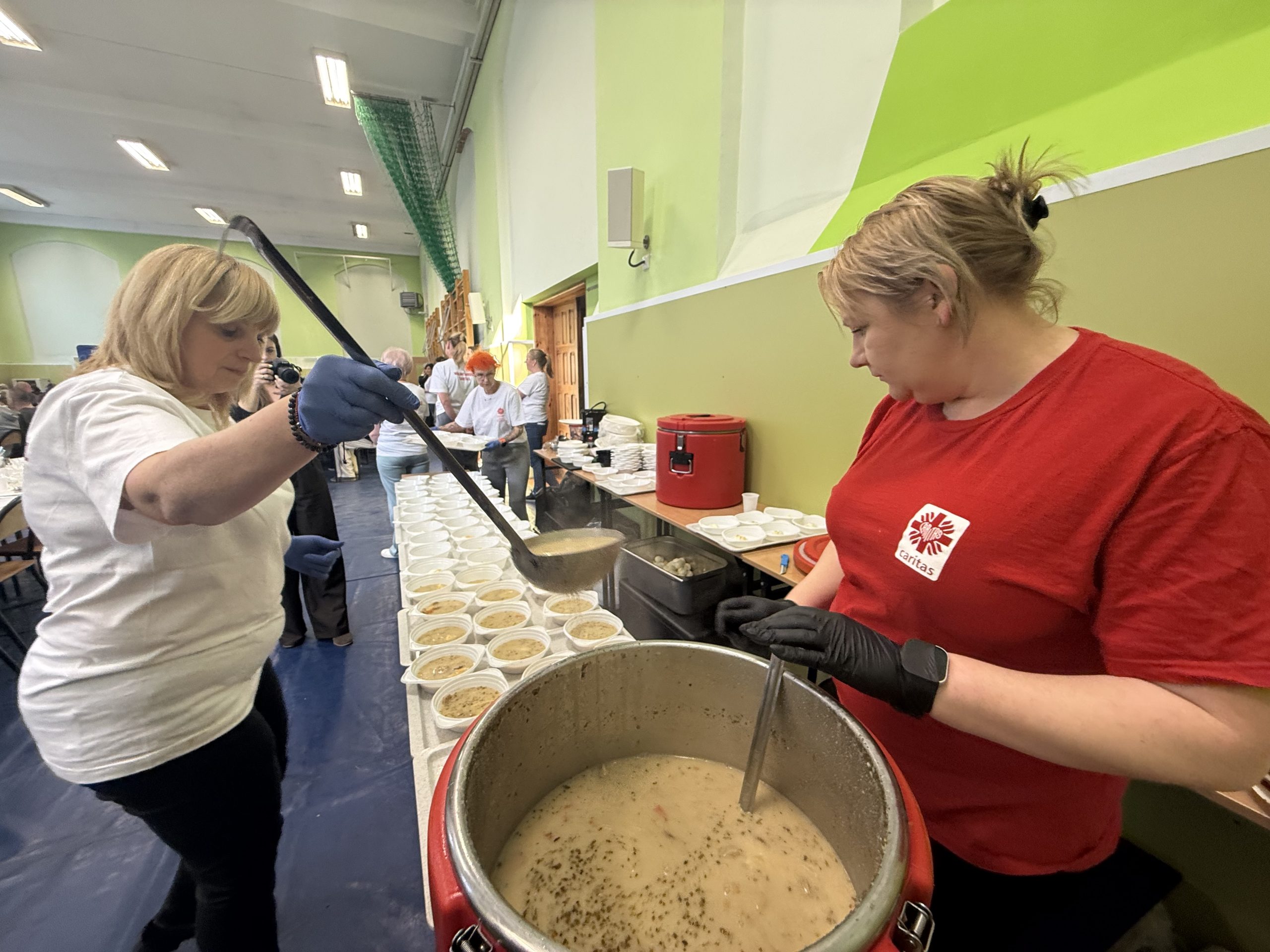 – Oczywiście nie mogło zabraknąć sałatki jarzynowej. Aby ją przygotować, zużyliśmy kilkadziesiąt litrów majonezu i całe mnóstwo warzyw. Od kilku dni praktycznie nie wychodziłyśmy z kuchni, aby przygotować wszystko na czas, ale gdy widzimy uśmiechnięte twarze naszych gości, serca się radują, tym bardziej, że proszą o dokładki – mówi Magdalena Chojnicka, wolontariuszka słupskiej Caritas.
