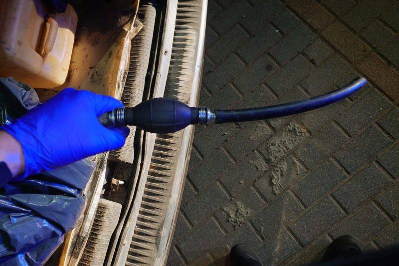 Mężczyznę na gorącym uczynku zatrzymał kierownik Posterunku Policji w Damnicy, który po służbie zauważył dziwne zachowanie kierowcy Opla. Pojazd, według relacji funkcjonariusza, zwalniał i zatrzymywał się przy zjazdach na nowo budowanej trasie S6 w okolicach Słupska. Podczas przeszukania bagażnika samochodu odnaleziono kanistry i przedmioty mogące służyć do kradzieży paliwa.