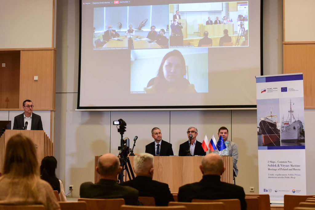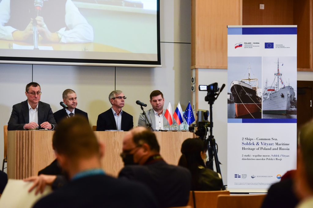 22.02.2022. Gdańsk. Konferencja prasowa z okazji zakończenia projektu „2 statki – wspólne morze. Sołdek i Vityaz: dziedzictwo morskie Polski i Rosji” (fot. Radio Gdańsk/Roman Jocher).