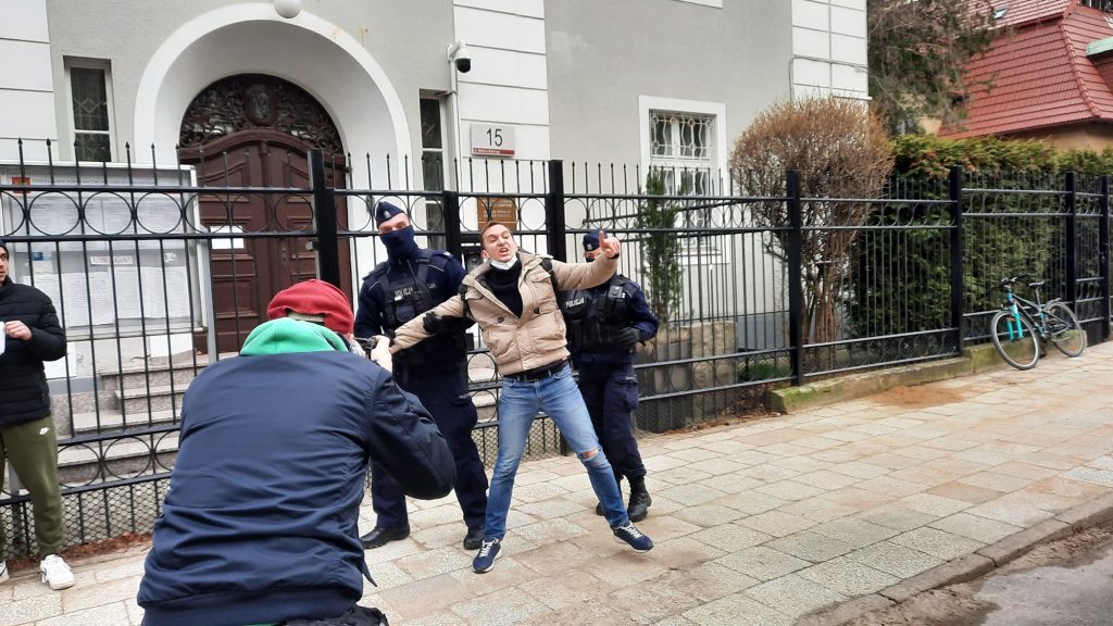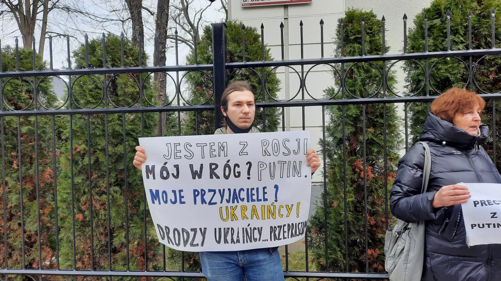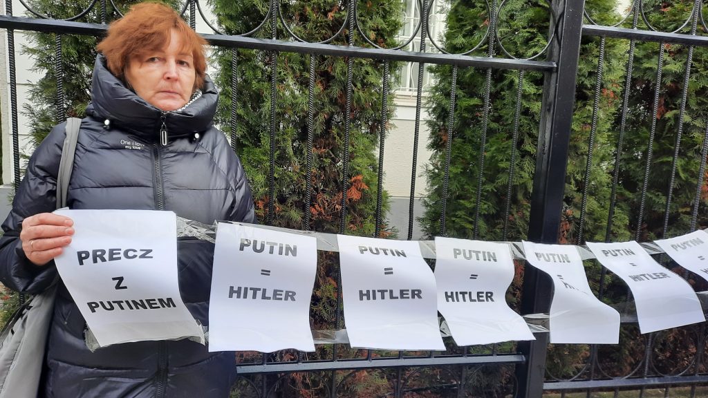 Tymczasem przed Ambasadą Rosji zorganizowano protest przeciwko działaniom Putina i rozpętanej przez niego wojnie. Pikietujący krzyczeli m.in. „Precz z Ukrainy”, „Agresorzy” i „Mordercy”