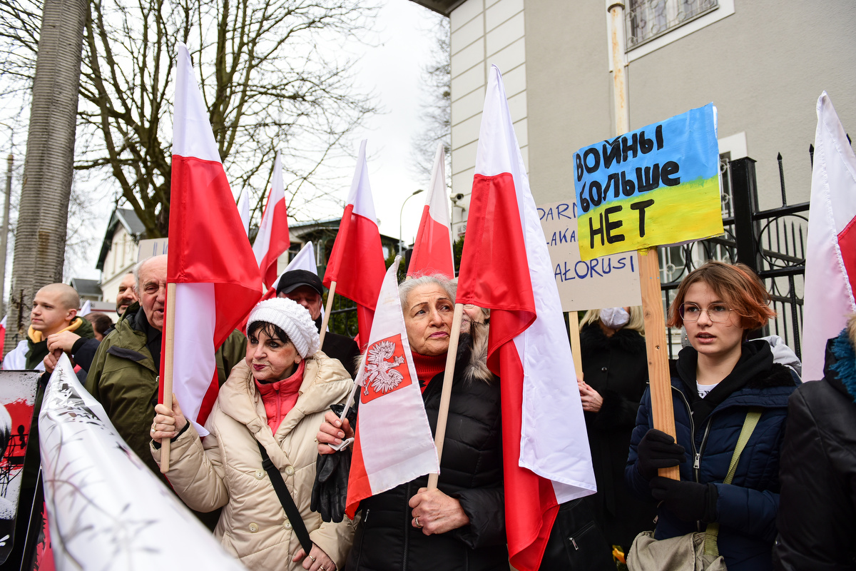 W sobotę w południe około stu osób zebrało się przed konsulatem generalnym Federacji Rosyjskiej w Gdańsku, by zaprotestować przeciwko agresji Rosji na Ukrainę i więzieniu przez reżim Aleksandra Łukaszenki Andżeliki Borys i Andrzeja Poczobuta. Pikietę zorganizowała Fundacja Łączy Nas Polska.