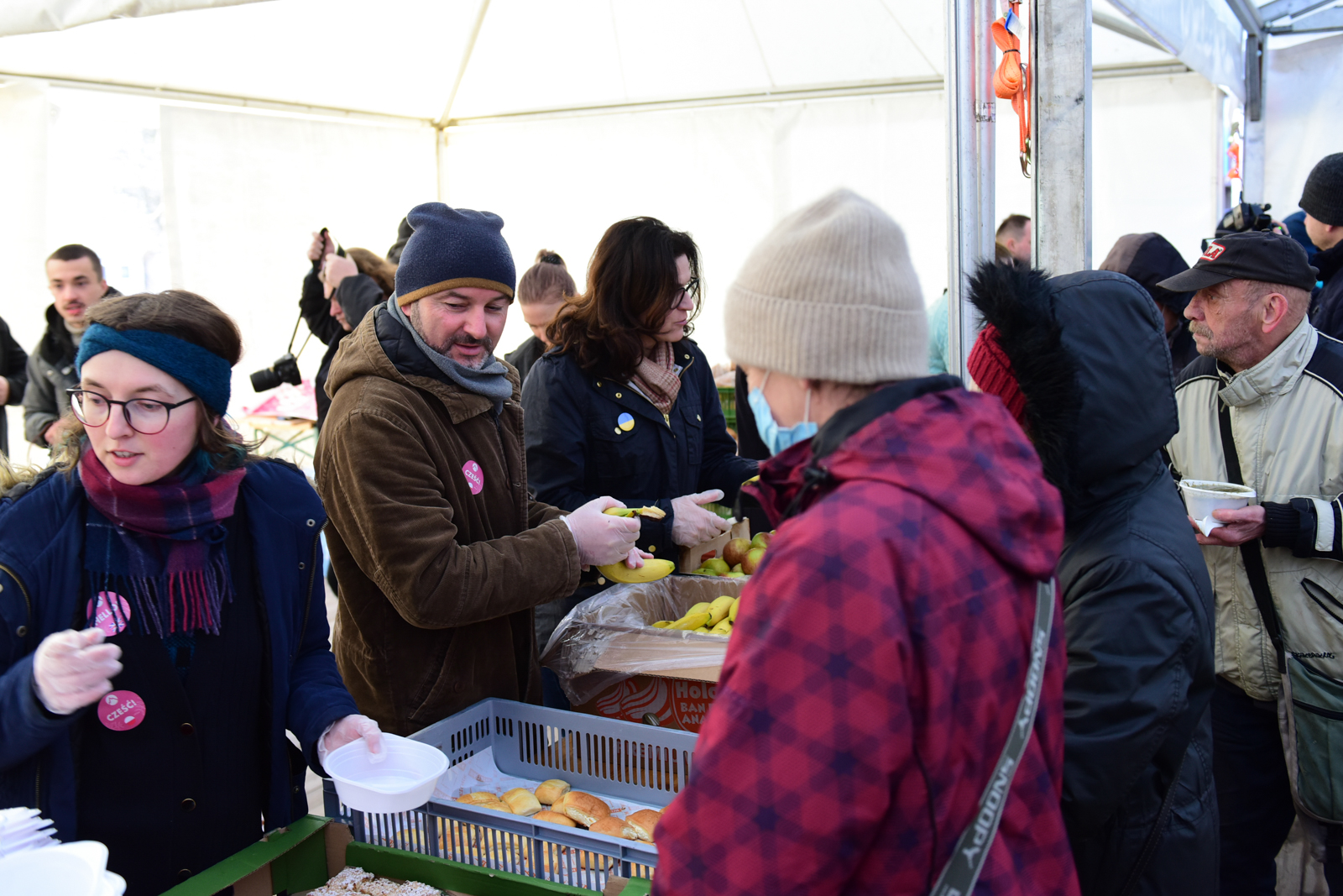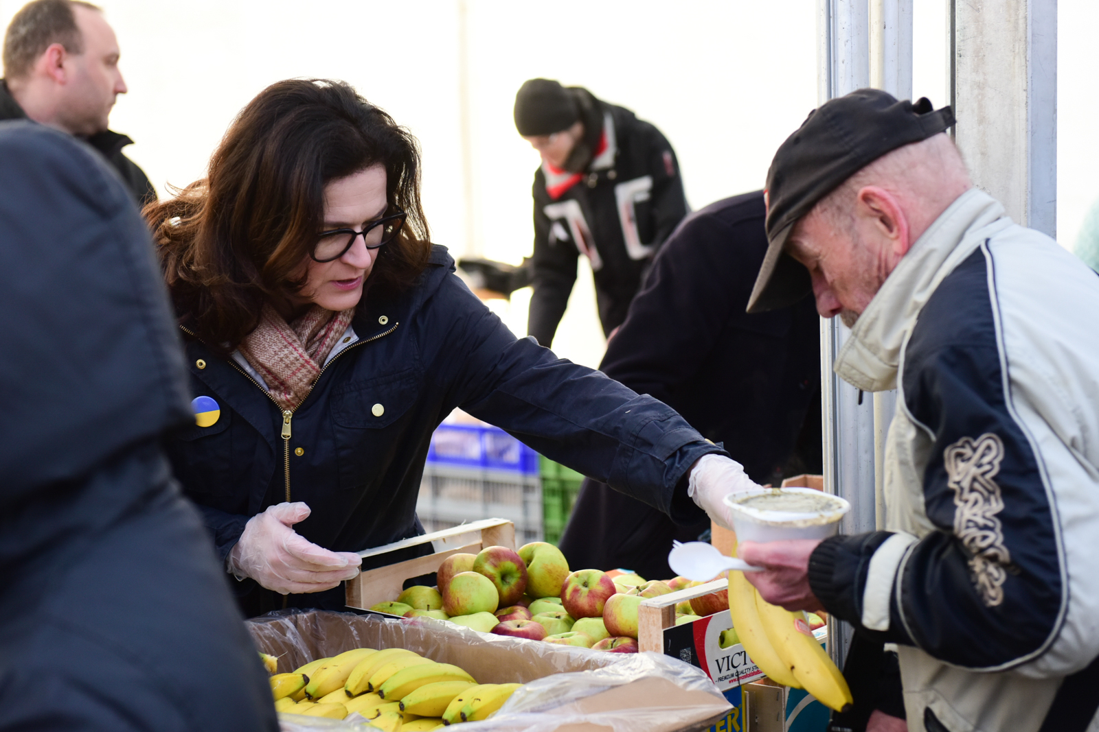 W rozdawaniu posiłków pomagała prezydent Gdańska Aleksandra Dulkiewicz.