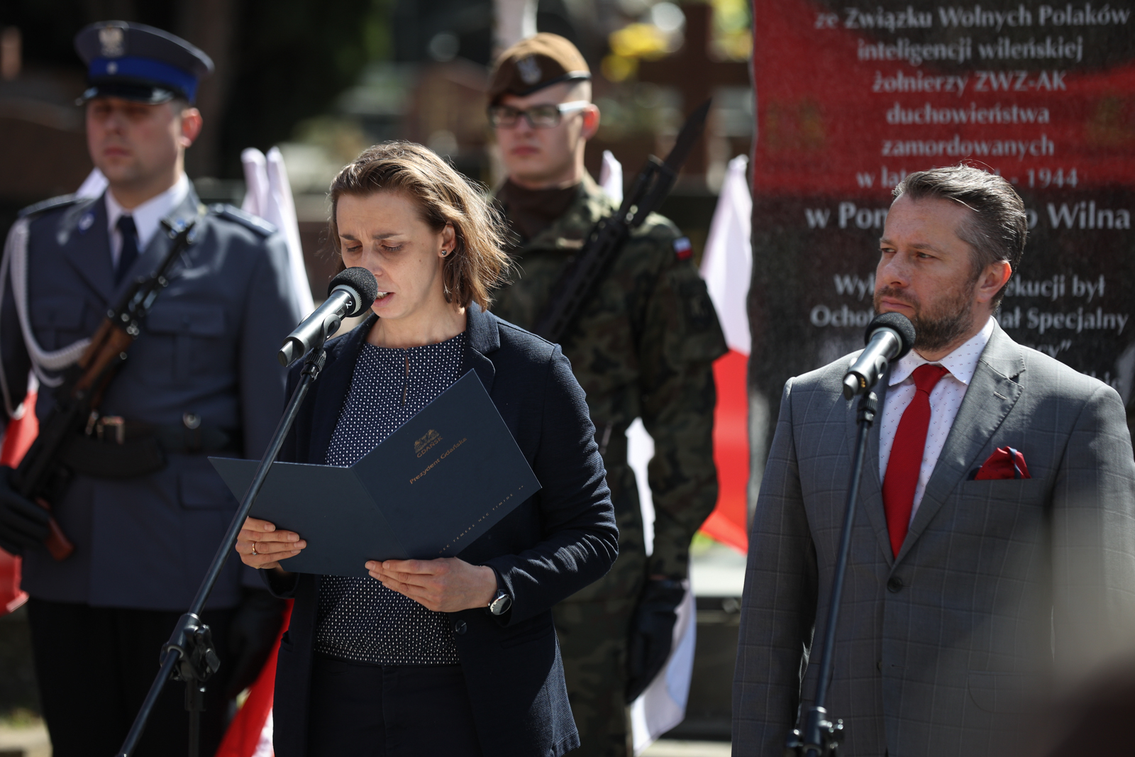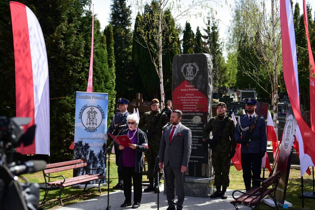 – Żydzi byli mordowani w ramach zaplanowanego przez Niemców holokaustu, natomiast Polacy mordowani byli za swój patriotyzm, wykształcenie, pomoc Żydom, walkę z niemieckim okupantem. W tym roku przypada 80. rocznica rozstrzelania dużej grupy młodzieży ze Związku Wolnych Polaków: około 100 młodych dziewcząt i chłopców zamordowanych głównie między 5-12 maja 1942 roku. Ci młodzi ludzie zdający sobie sprawę z wielkiego ryzyka, jakie stanowił udział w organizacji stawiającej opór okupantowi, nie wahali się walczyć dla dobra ojczyzny. Tymczasem wybrali ryzyko. To dzięki ich postawie nie brakowało bohaterów – mówiła Maria Wieloch, prezes Stowarzyszenia Rodzina Ponarska.