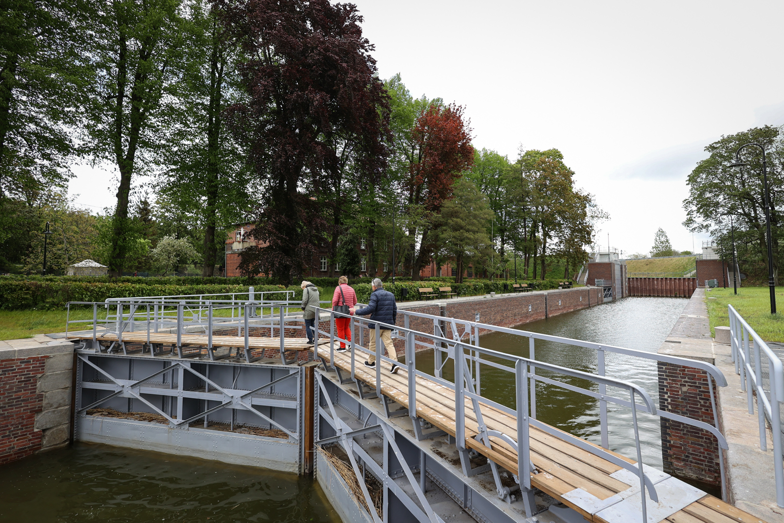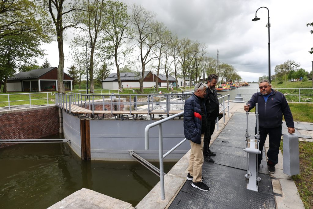 – Był czas, że śluzy pracowały 24h, stały kolejki a my musieliśmy dawać radę, żeby przepuścić te wszystkie jednostki, które chciały tędy przepłynąć. Aktualnie jesteśmy w śluzie południowej, śluza północna została zamknięta w 1980r., kiedy zaczęła działać południowa. Ja pracuję tutaj od 1983r. Pochodzę z Łodzi, z centralnej Polski. Za młodu, w wojsku, wzięli mnie na wodę, służyłem w marynarce i do tego żywiołu zawsze było mi blisko. Praca tutaj często daje taki dreszczyk adrenaliny, kiedy do śluzy wpływają statki, które są niewiele węższe od niej. Tutaj z początku, kiedy jeszcze był drewniany most, kiedy tam statki się nie mieściły, kapitanowie specjalnie je podtapiali. W Płocku budowali statki, holowniki, które miały większe zanurzenie niż próg na śluzie. Wtedy z kolei podczepiali pływaki – tłumaczył Dariusz Kuligowski.