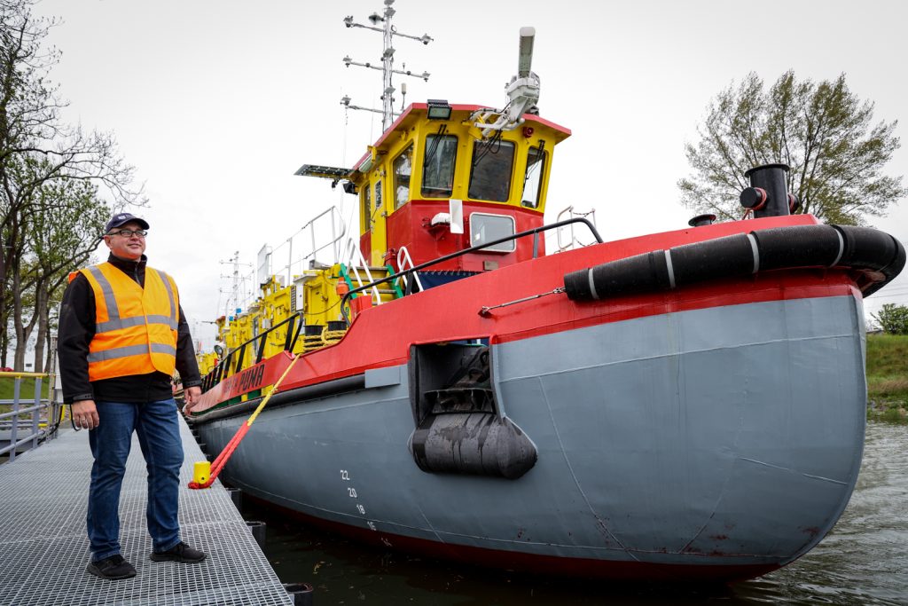 Przyglądaliśmy się Flotylli Lodołamaczy, które tutaj stacjonują i wyglądają pięknie. O tym, jak przemyślana jest ich budowa i kolorystyka opowiedział nasz trzeci gość, Bogusław Pinkiewicz z Wydziału Komunikacji i Edukacji Regionalnego Zarządu Gospodarki Wodnej.