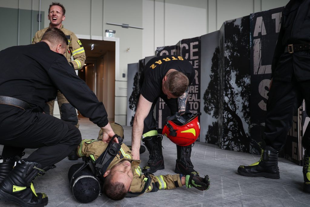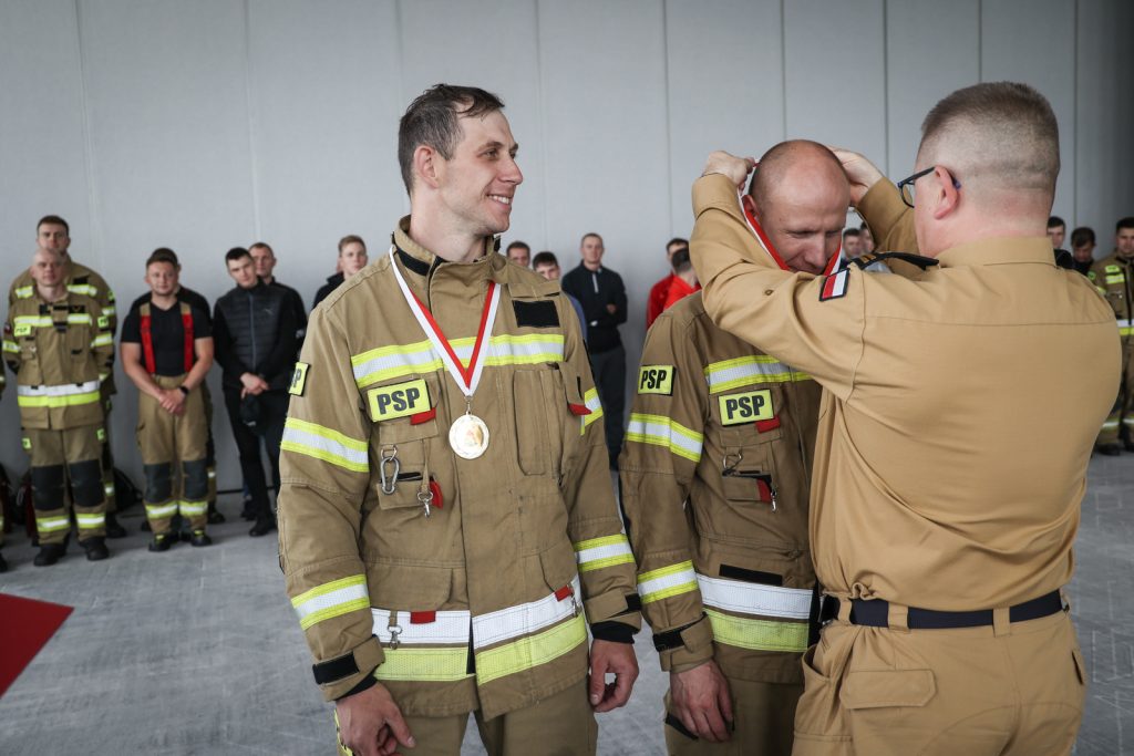To zawody, w których liczy się drużyna – dodaje kierujący zawodami brygadier Mirosław Cyrson. Jak mówi, zawodnicy na trasie muszą się wzajemnie wspierać i mądrze rozłożyć siły. W praktyce warunki pożarowe mogą być jeszcze trudniejsze, bo trzeba dodatkowo rozwijać węże.