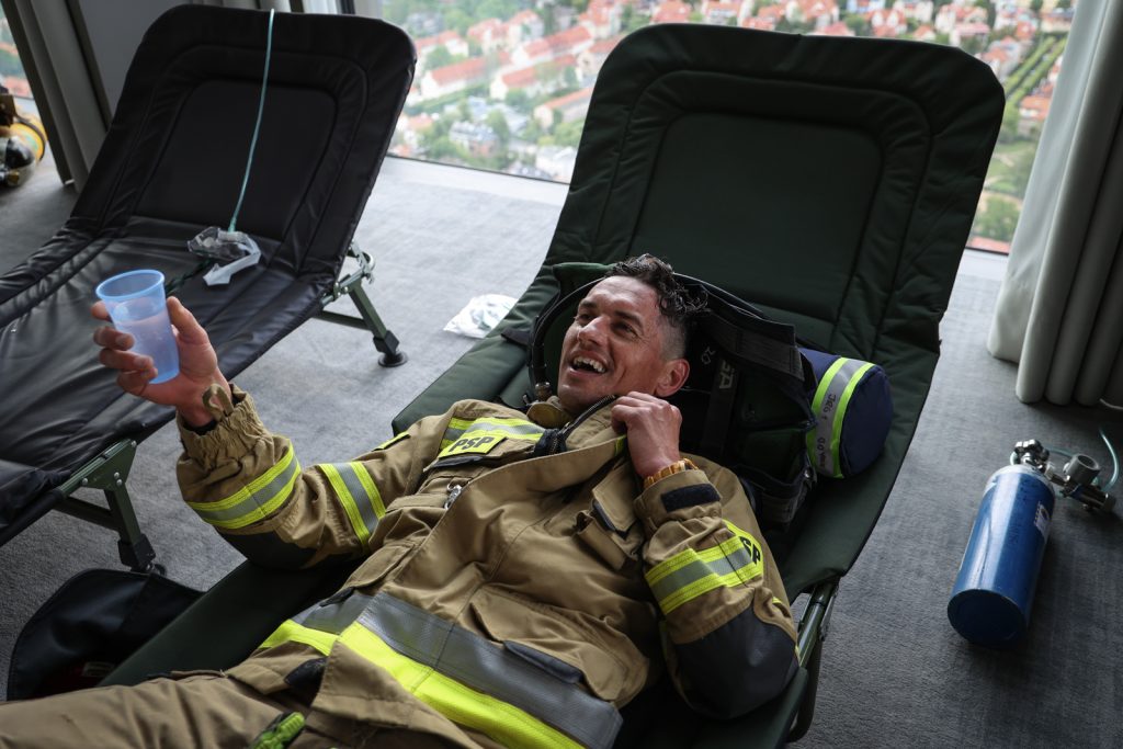 – Nie spodziewałem się, że będzie aż tak ciężko. Aparat i ubiór robią olbrzymią różnicę. To około 40 procent trudności. Ciężko było już około 25. piętra. Trzeba było się nastawić na przetrwanie – mówi starszy strażak Patyk Gawroński ze Sztumu.