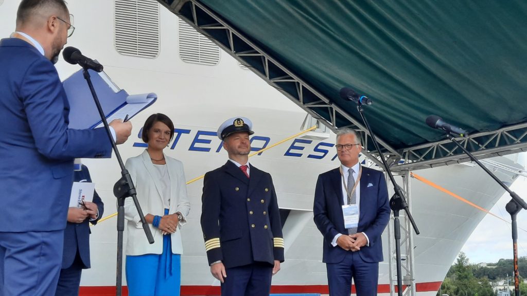 W sobotę odbyła się ceremonia nadania nazwy jednostce. Matką chrzestną statku została wiceprezydent Katarzyna Gruszecka-Spychała, z którą rozmawiała Anna Rębas. Jak przyznała wiceprezydent, formuła nadania imienia jest zawsze stała. Trzeba się jej nauczyć na pamięć. – Pływaj po Bałtyku, łącząc Gdynię z Karlskroną, Polskę ze Szwecją. Bądź radością dla załogi i pasażerów w każdym rejsie. Przynoś chwałę tym, którzy cię zbudowali! Nadaję ci nazwę Stena Estelle – powiedziała.