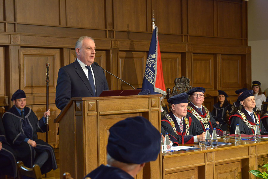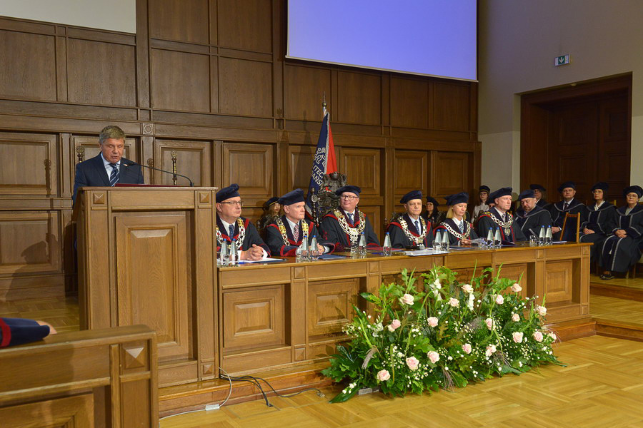 – Za nami rok, który można by określić jednym słowem: „wymagający” – powiedział rektor w trakcie swojego przemówienia. – Mierzyliśmy się z wyzwaniami, których jeszcze kilka lat temu nie bylibyśmy w stanie sobie wyobrazić. Przez cały czas jednak podejmowaliśmy odpowiednio szybkie i adekwatne do sytuacji działania, które przełożyły się na to, że dziś możemy zgodnie stwierdzić, że ten rok był dla Politechniki Gdańskiej dużym krokiem naprzód – dodawał.