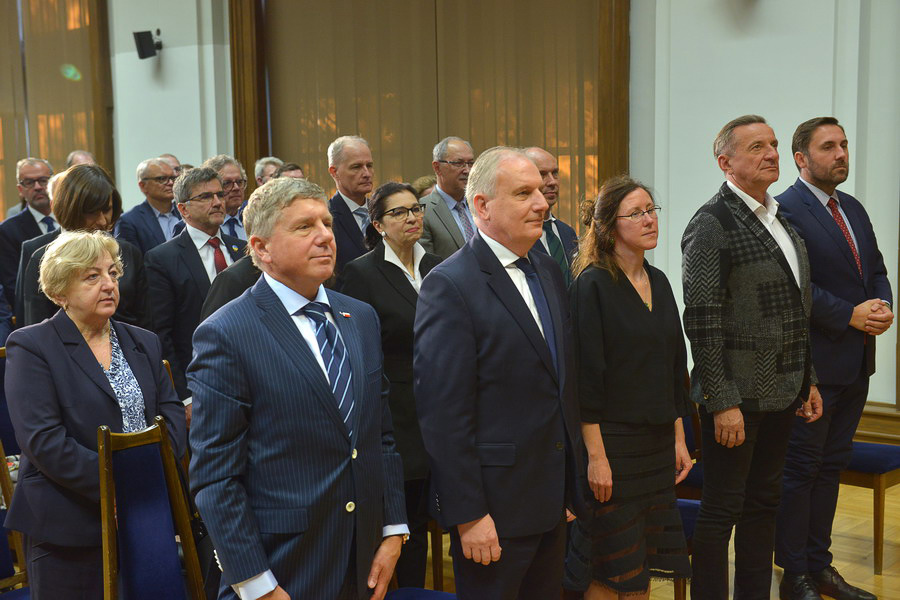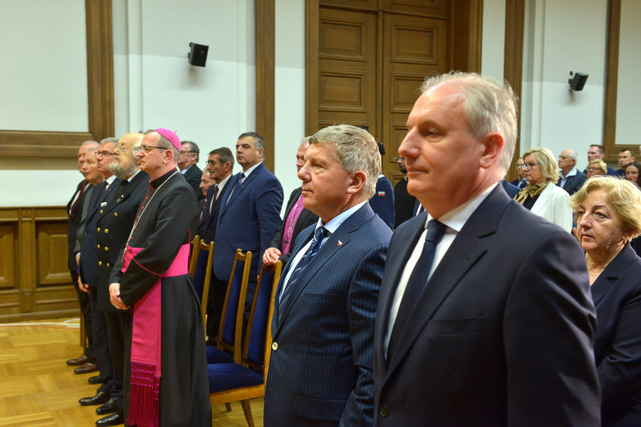 Następnie wojewoda pomorski Dariusz Drelich przekazał słowa od premiera RP Mateusza Morawieckiego, natomiast list od ministra edukacji przeczytał prof. Krzysztof Wilde, rektor PG.