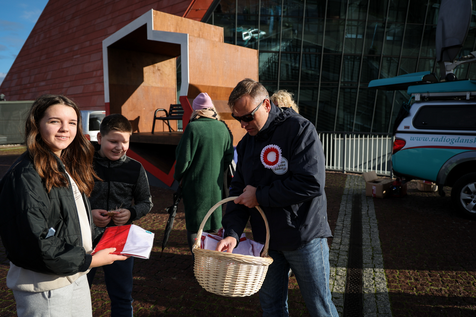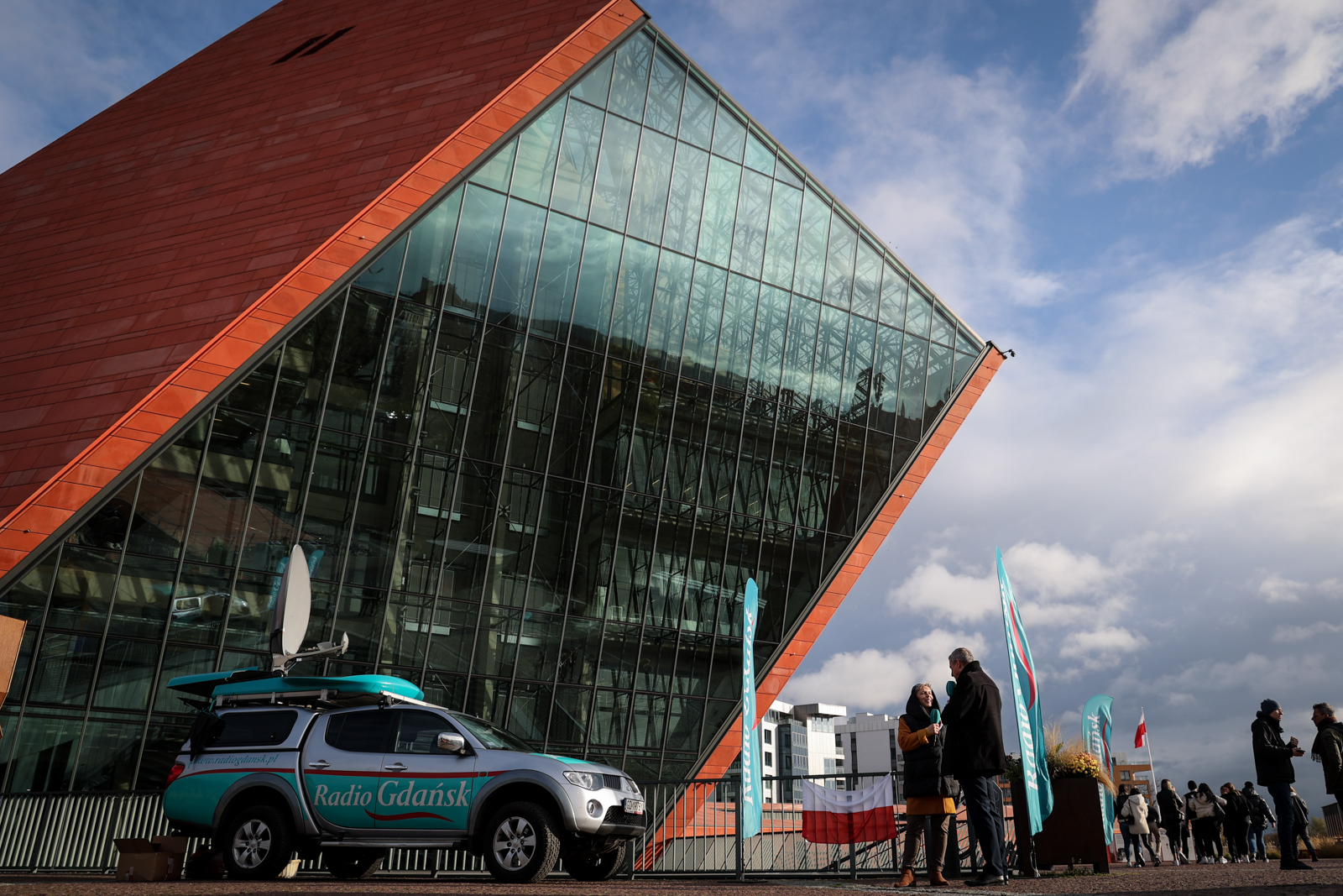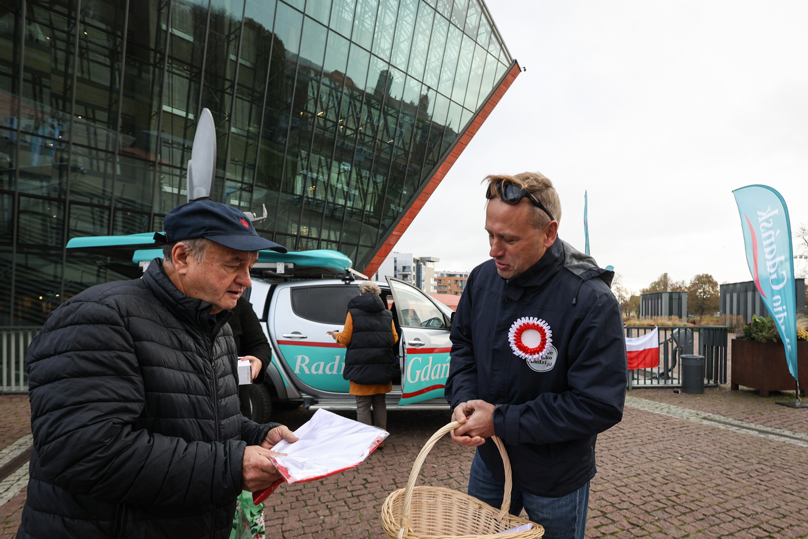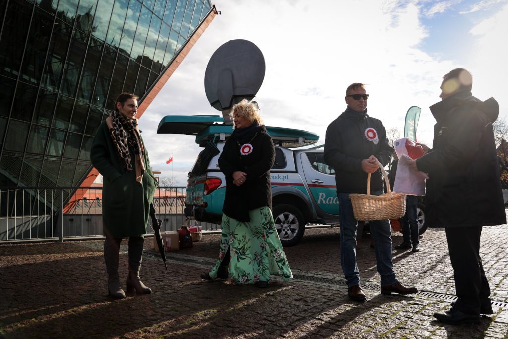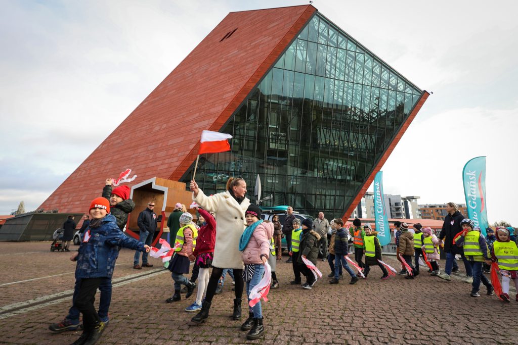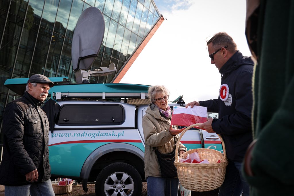 Nasza rozgłośnia rozpoczęła świętowanie Dnia Niepodległości już w czwartek. Mobilne studio Radia Gdańsk stanęło przed budynkiem Muzeum II Wojny Światowej, skąd nadajemy program specjalny pod hasłem „Radośnie świętujemy niepodległość”, a także rozdajemy biało-czerwone flagi i ciastka.