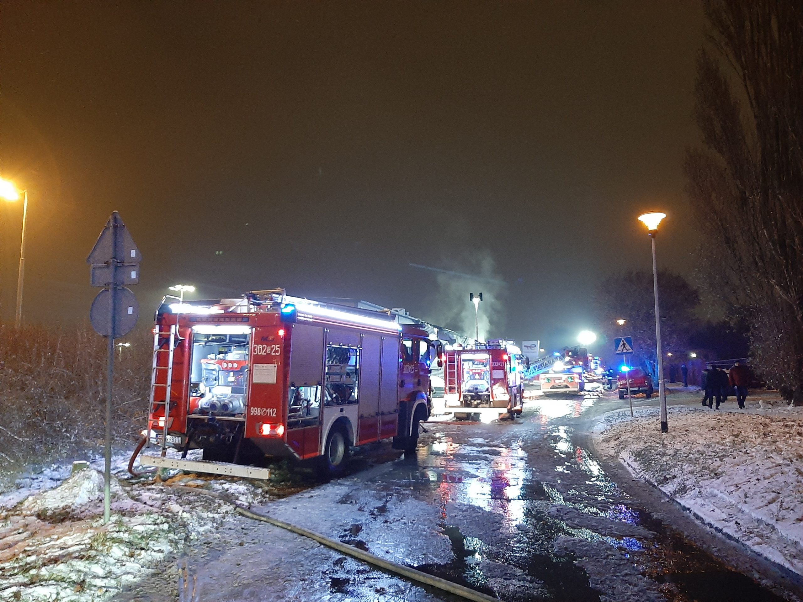 Duży pożar warsztatu i stacji kontroli pojazdów w gdańskiej dzielnicy Chełm
