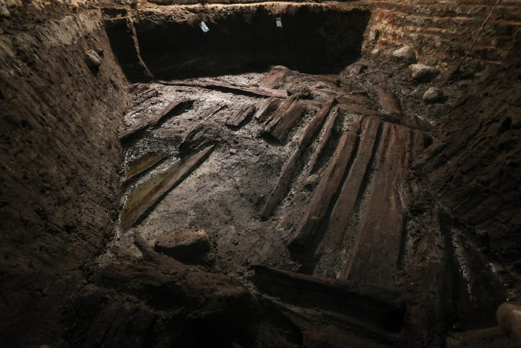 – Pozostałości wału przetrwały do naszych czasów tylko dlatego, że zaistniały ku temu sprzyjające okoliczności. Po pierwsze nikt ich nie zniszczył w XIV wieku, być może dlatego, że stabilizowały konstrukcje stawiane na podmokłym terenie. Po drugie wał znajduje się w torfie, który świetnie konserwuje materiał organiczny. Po trzecie jest to teren podmokły, a woda również zachowuje drewno w nienaruszonym stanie – mówi prof. Waldemar Ossowski. – Mimo wszystko udostępnienie znaleziska wiąże się z dużym ryzykiem. W piwnicach panuje duża wilgoć, dodatkowo w miesiącach letnich do wykopu wchodzi woda gruntowa, która podnosi się do takiego stopnia, że uniemożliwi czytelne wyeksponowanie drewnianych pozostałości. Dlatego tak cenne znalezisko na razie najlepiej będzie zasypać, po to by w stanie, w jakim przetrwało ponad 1000 lat, przetrwało do czasu, gdy będziemy mieli pomysł, jak je na stale i bez ryzyka pokazać odwiedzającym.