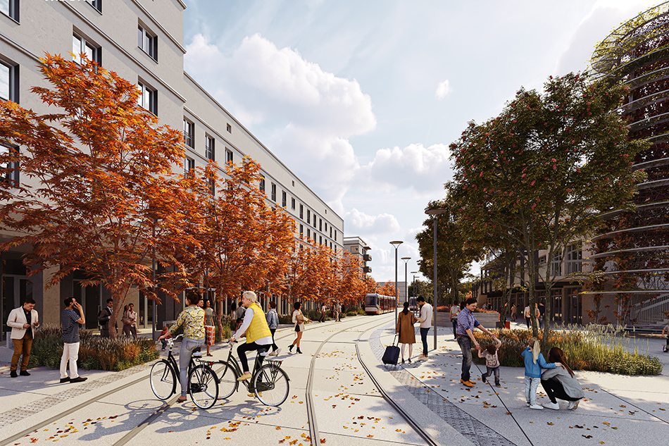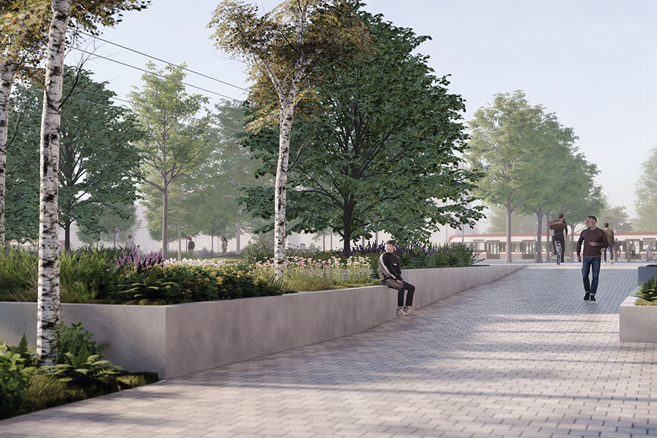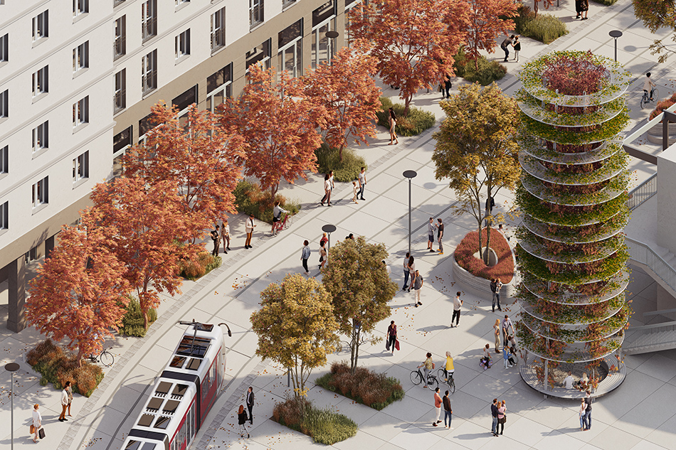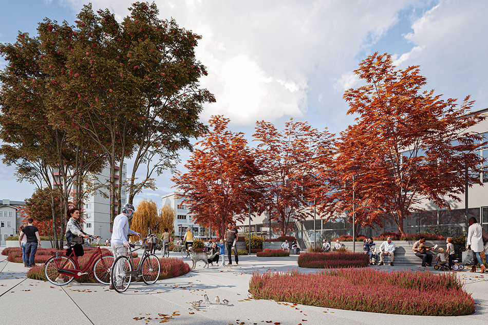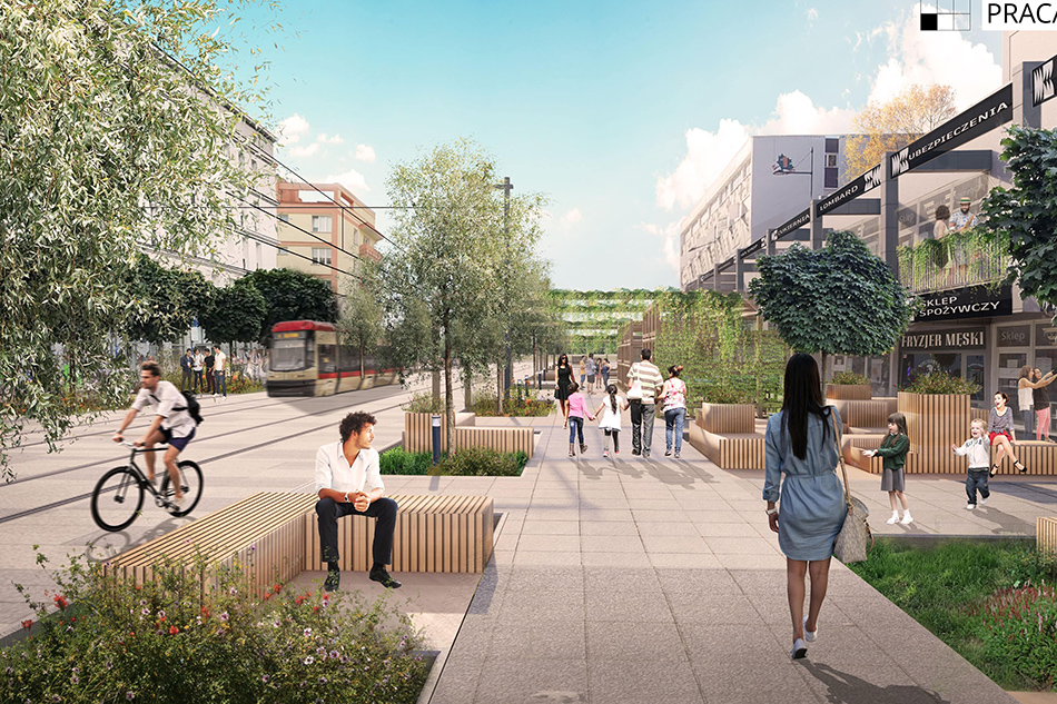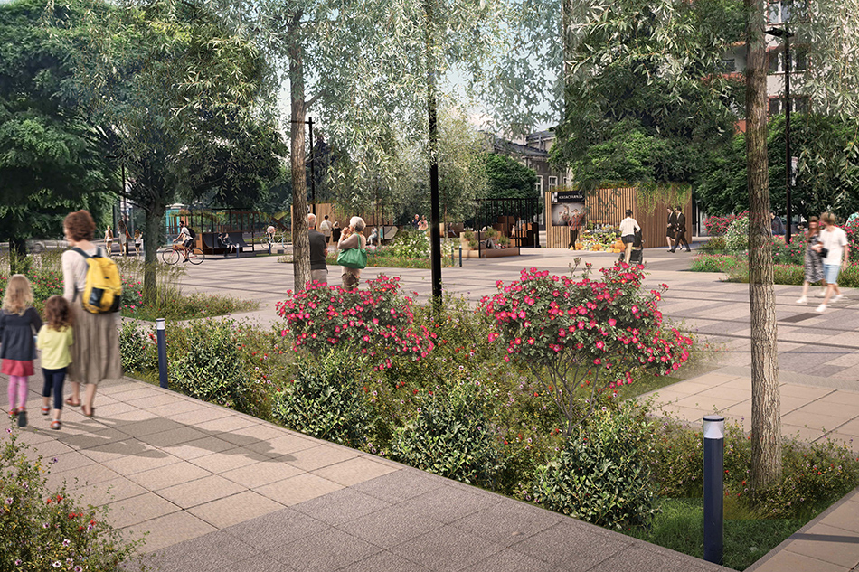 Nagrodzeni autorzy nawiązali do legendarnych patronów, proponując roślinność w kolorze czerwonym, np. klony czerwone czy jarzębinę. Wkomponowali również nową linię tramwajową w ciągu ulicy Klonowej i wprowadzili rozwiązania zapobiegające powodziom.
