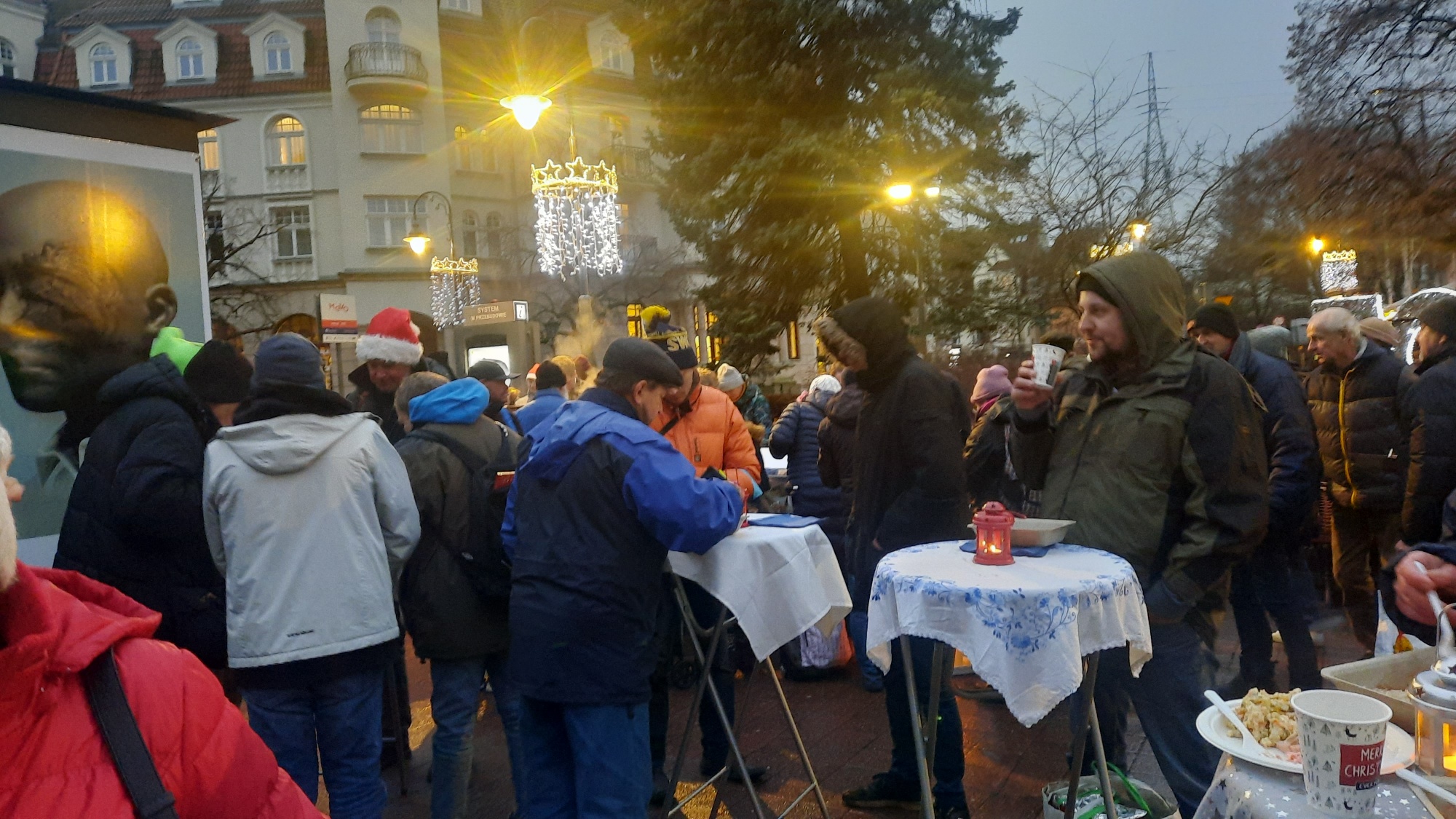 W tym miejscu wigilijne spotkania odbywają się od siedmiu lat. Kolację wigilijną – pyszną i ciepłą, bo jadłam też razem z nimi – przygotowała oczywiście fundacja „Zupa na Monciaku”, dzięki pomocy sponsorów i ludzi dobrej woli.