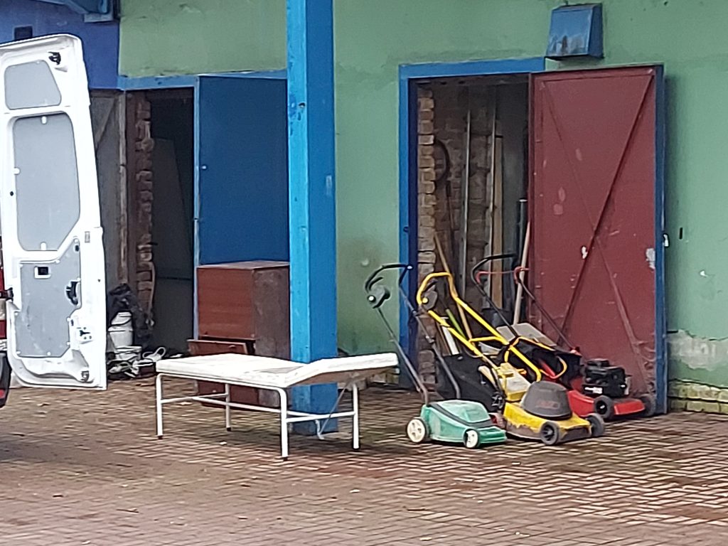Grabienie liści, zbieranie gałęzi czy prace związane z wywożeniem uszkodzonego sprzętu lub jego pozostałości zaczęły się przy korcie centralnym, który od kilku lat w ogóle nie był użytkowany – podobnie jak przyległy do niego „domek klubowy”. Gdy we wtorek na miejsce przyjechali członkowie SKT z wiceprezesem Tomaszem Cejrowskim, zastali otwarte magazyny pod trybunami przed którymi stał wynajęty bus „na minuty”, do którego wynoszono różnego rodzaju papiery. Obok stał przygotowany sprzęt, taki jak kosiarki, maszyny ogrodowe a nawet specjalistyczny walec do ubijania kortów.