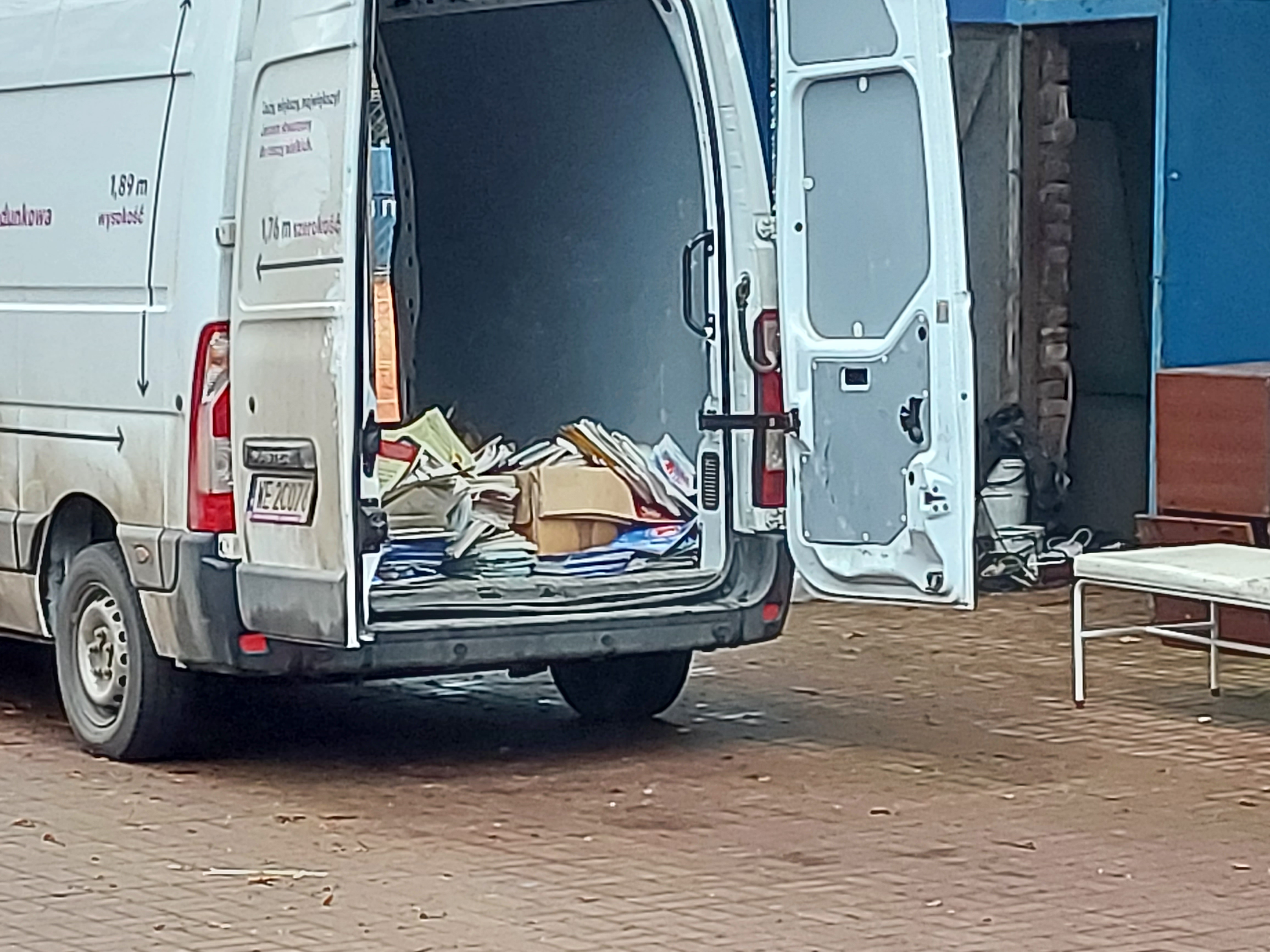 Policja przez kilkadziesiąt minut wykonywała między innymi zdjęcia terenu, samochodu „na minuty” a także pisma, które policji przekazały osoby otwierające magazyny i wynoszące z nich rzeczy.