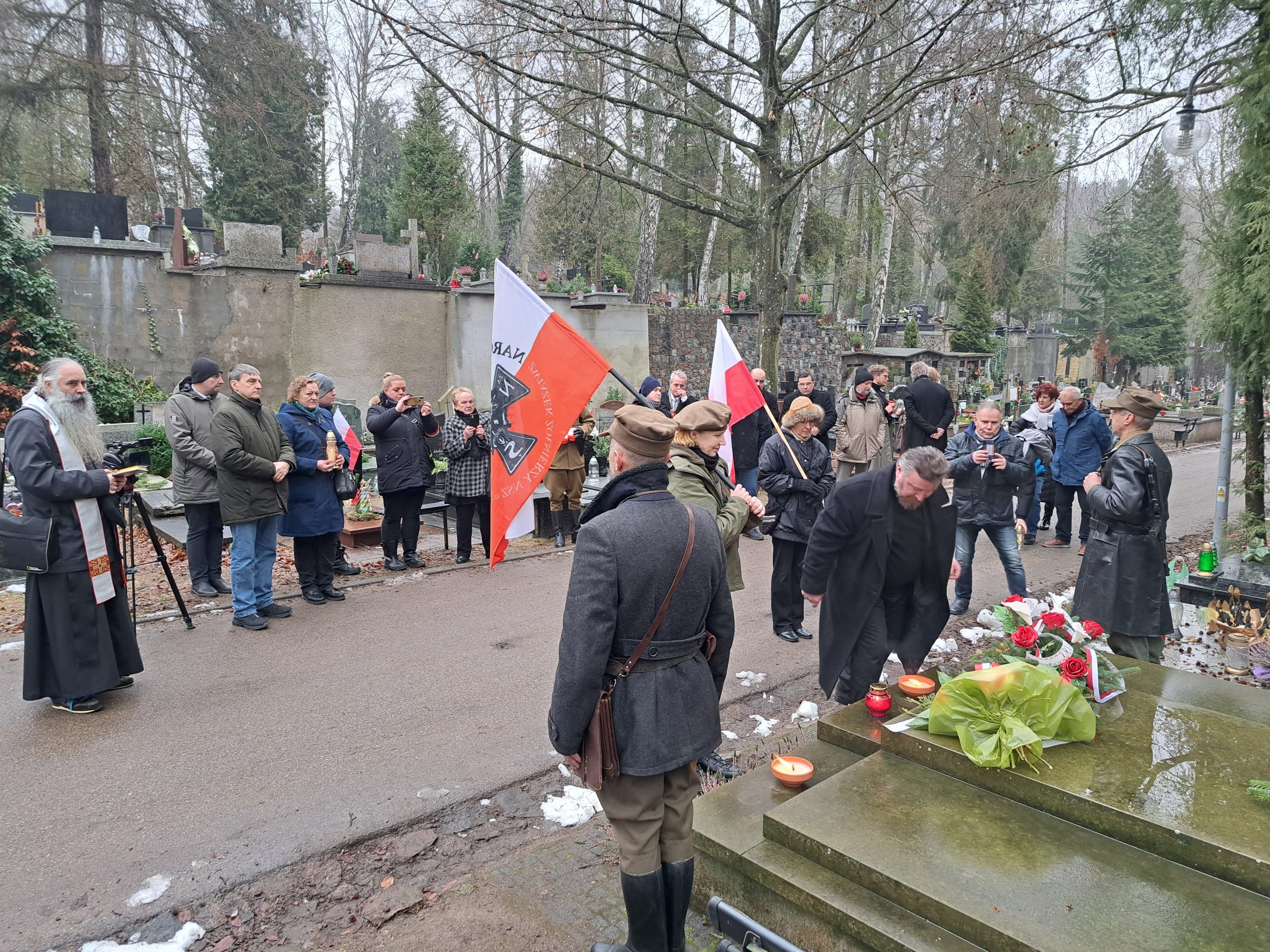 Wśród kilkudziesięciu obecnych przy pomniku osób był Jan Białostocki, wnuk Komendanta Głównego Niezawisłych Sił Zbrojnych.