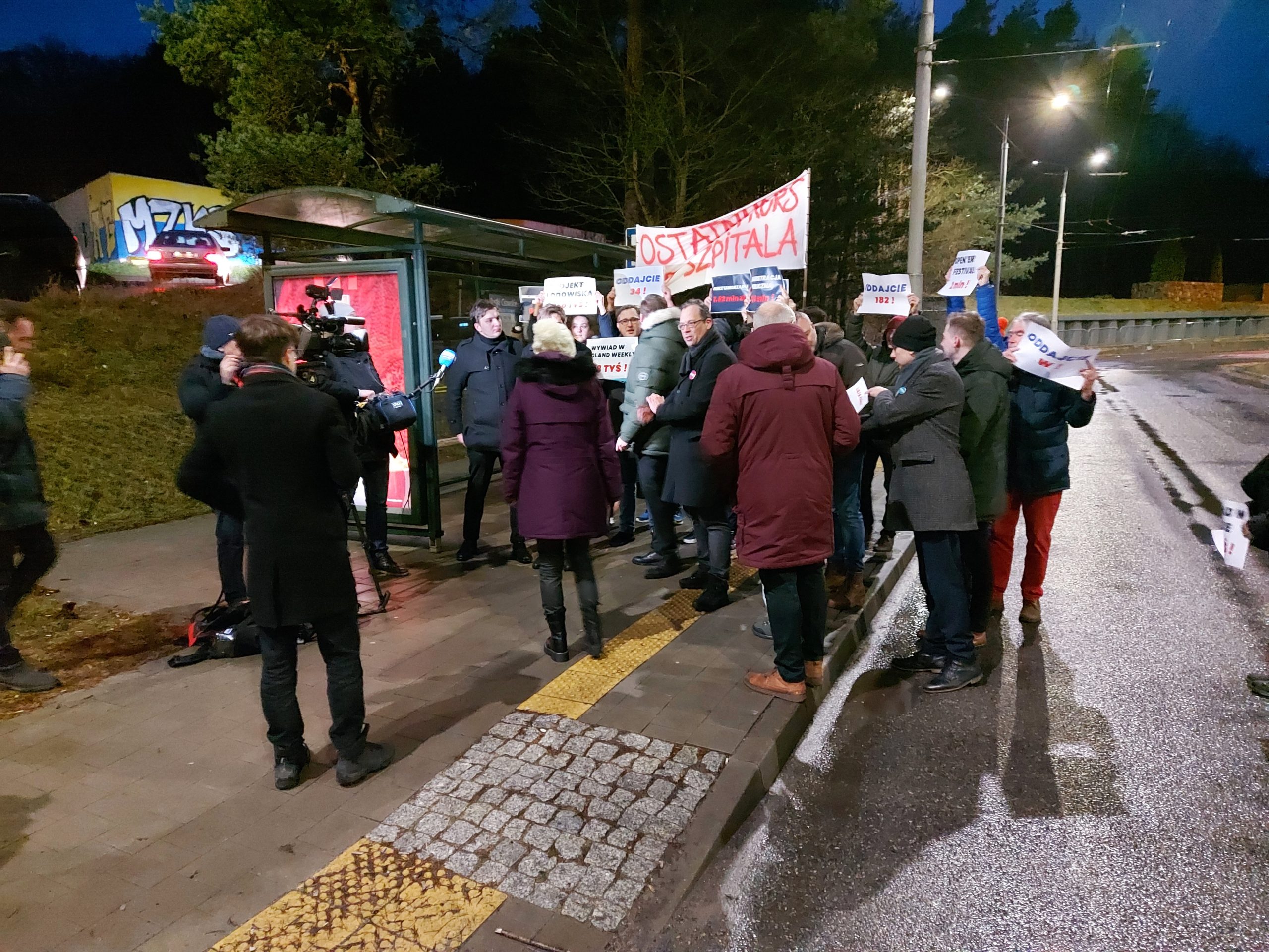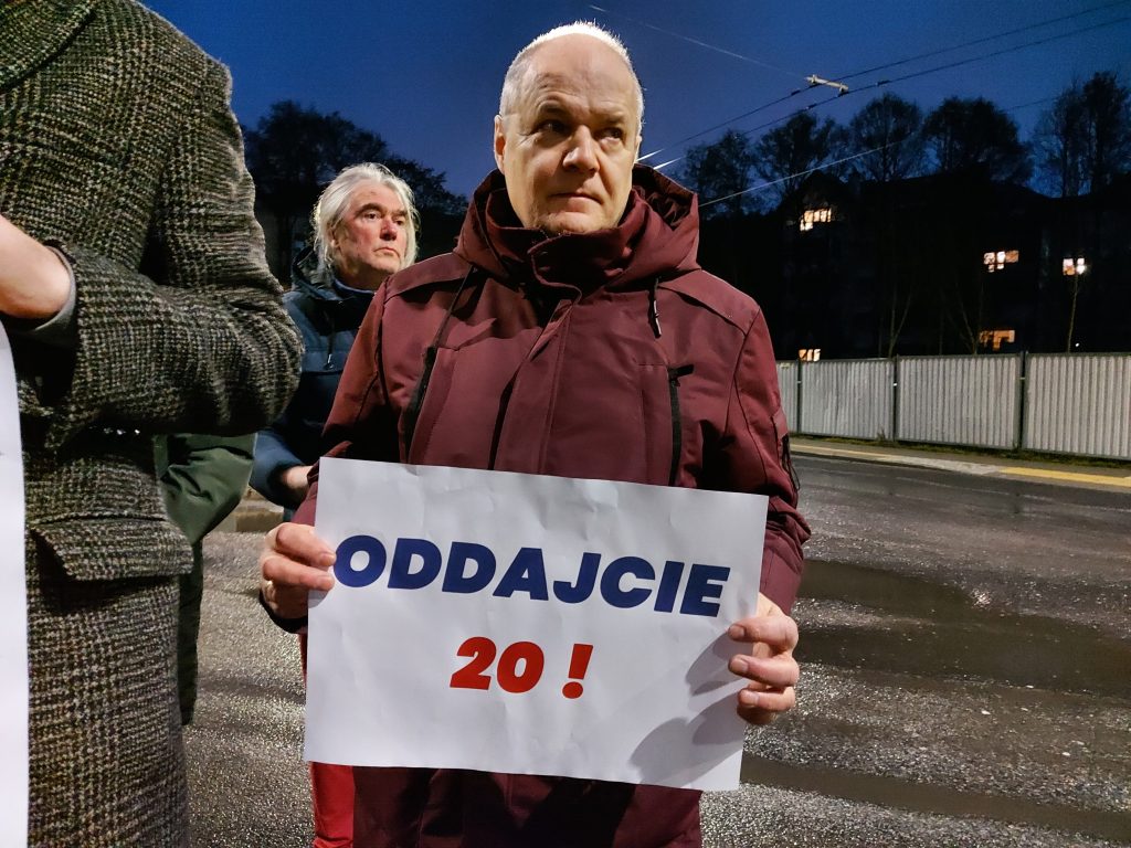 W trakcie protestu na przystanku początkowym linii „W” w Pustkach Cisowskich apelowano do Wojciecha Szczurka, aby „się zatrzymał”.