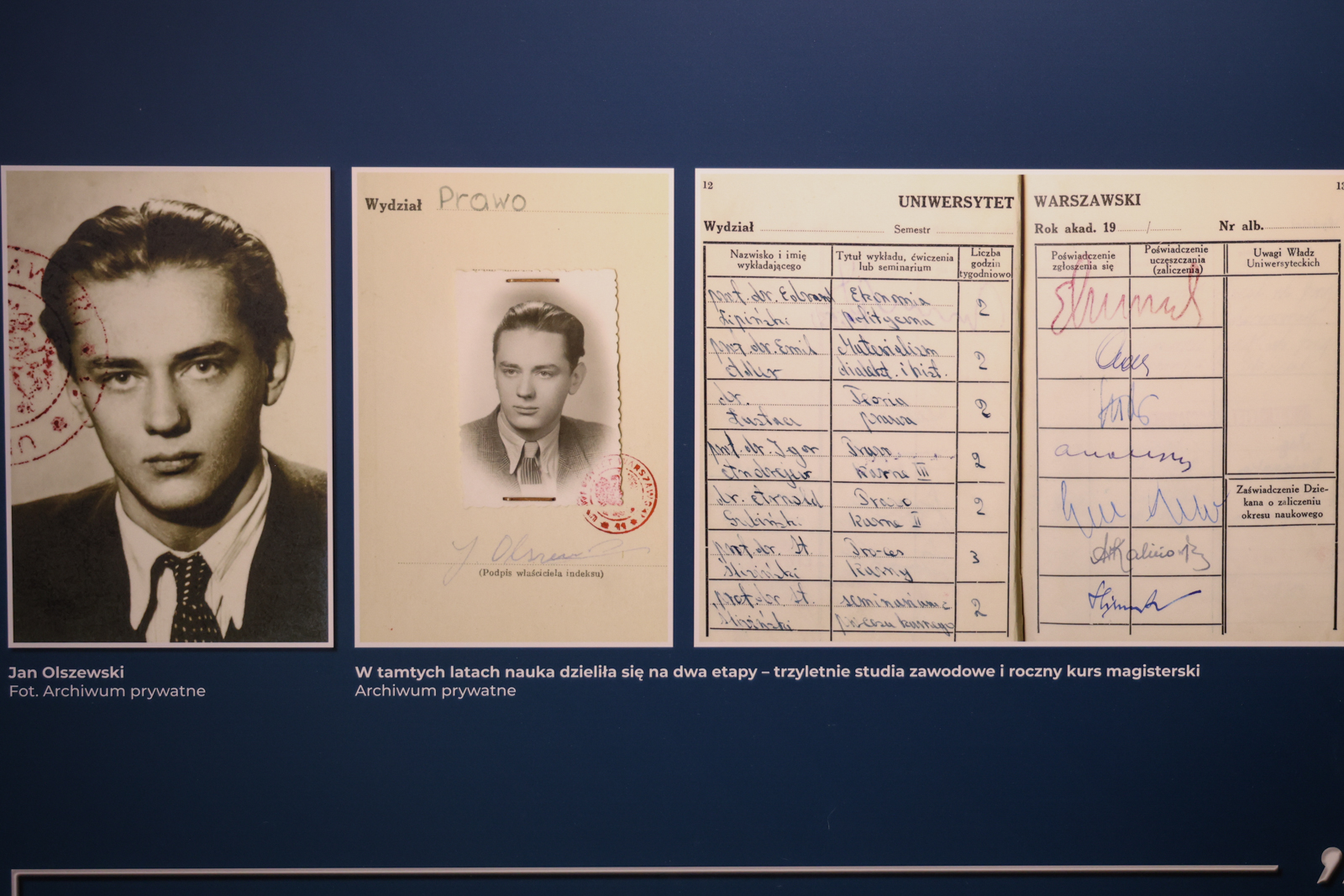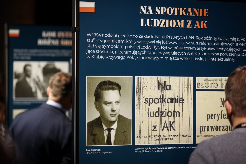 – Zaczynamy i kończymy wystawę od rysu rodzinnego. Mamy dużo fotografii od rodziny i znajomych, dzięki którym poznamy Jana Olszewskiego z bardziej prywatnej strony, zobaczymy jego żonę i dowiemy się, jak mieszkał. Zapoznamy się również z jego późniejszymi działaniami: dziennikarskimi, prawniczymi, jako obrońcy politycznego, premiera czy po prostu działacza politycznego. Staraliśmy się, żeby ten obraz, przy ograniczonych możliwościach, był pełny – podkreślił.