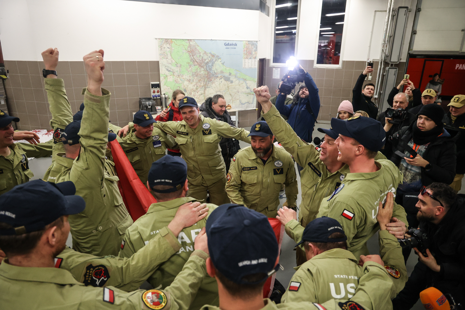 W czwartek wieczorem, na terenie macierzystej Jednostki Ratowniczo-Gaśniczej nr 6 w Gdańsku, zostali powitani przez Dariusza Drelicha, wojewodę pomorskiego i Aleksandrę Dulkiewicz, prezydent Gdańska.