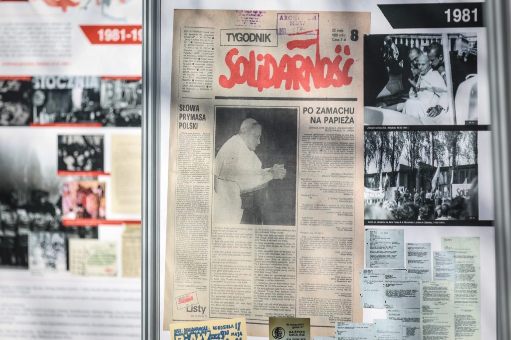 Ponowne otwarcie wystawy „Ty nas obudziłeś, my Cię obronimy” o św. Janie Pawle II odbyło się w piątek przed budynkiem Komisji Krajowej NSZZ „Solidarność” przy ul. Wały Piastowskie 24 w Gdańsku.