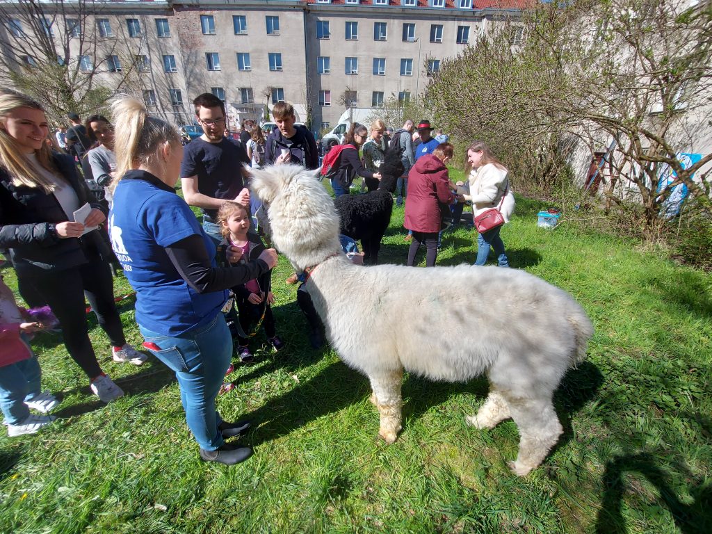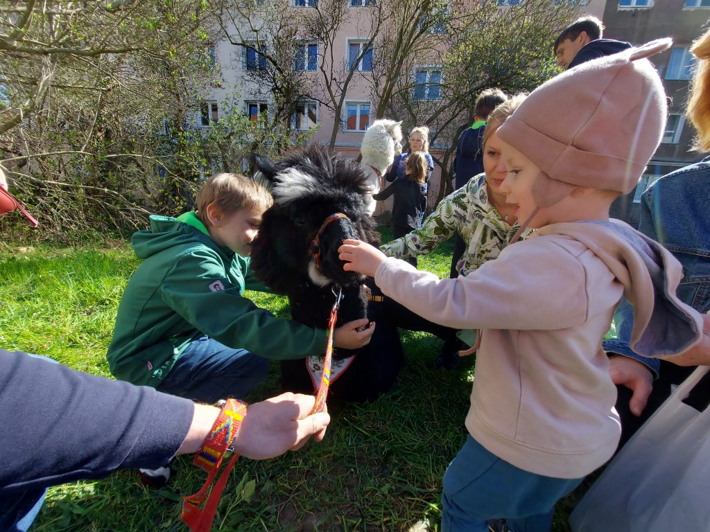 Największą atrakcją pchlego targu były dwie… lamy. Żywe zwierzęta, przyzwyczajone do głaskania i obecności dzieci, przyciągały tłumy. Można było je nakarmić i zrobić sobie z nimi zdjęcie.
