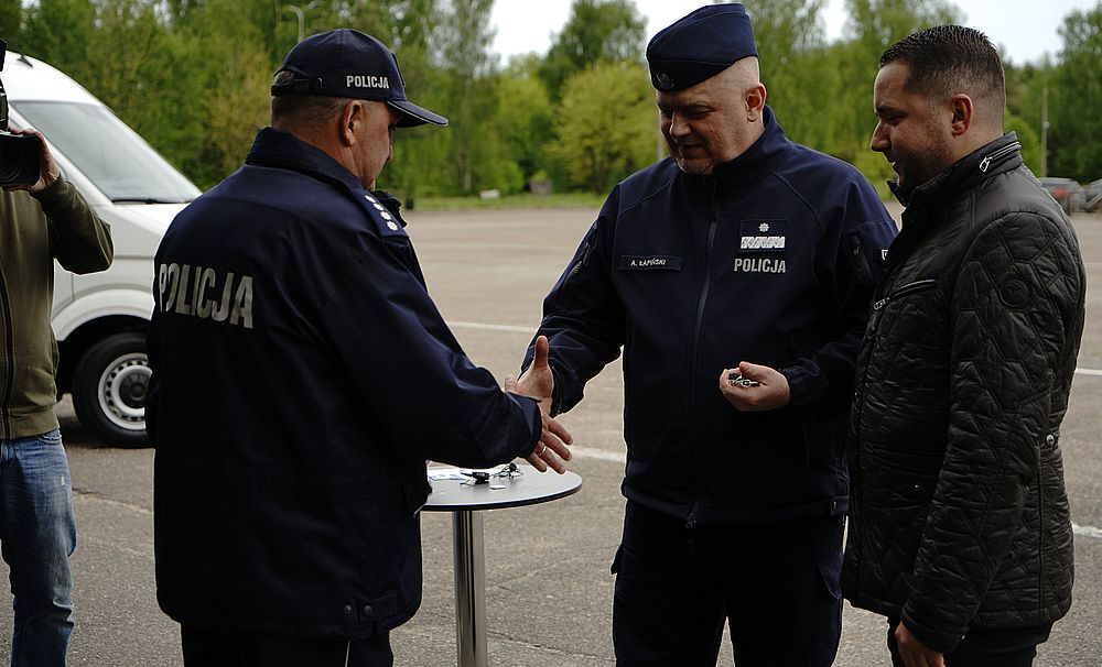 Przekazania auta dokonali nadinsp. Andrzej Łapiński – Komendant Wojewódzki Policji w Gdańsku, Łukasz Łuczak – prezes zarządu Firmy My Car i Krzysztof Iwaszko – kierownik produkcji firmy My Car.