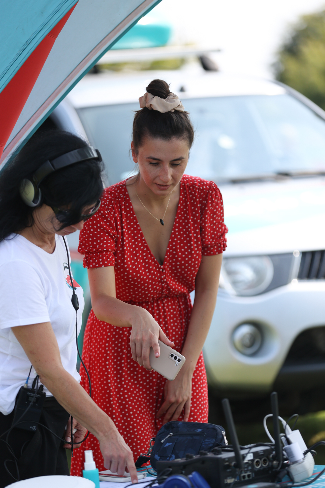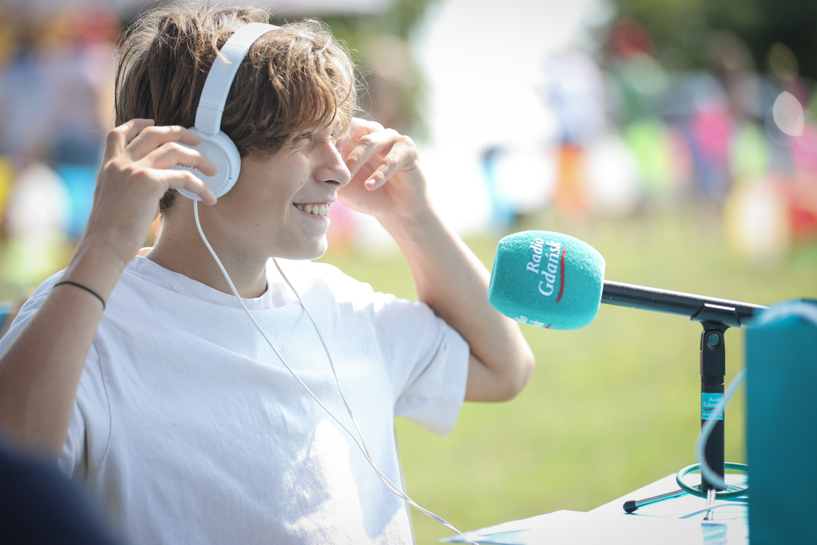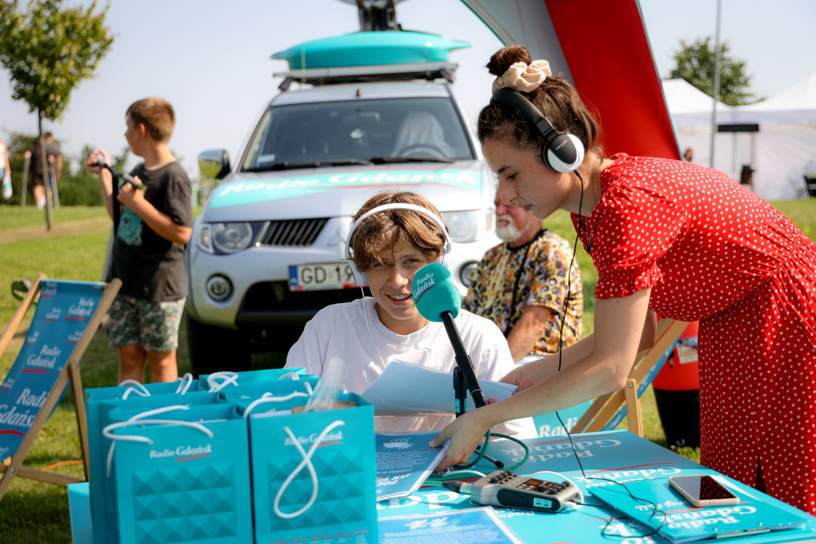 Również tym razem w naszym mobilnym studiu nie zabrakło atrakcji dla mieszkańców i turystów, którzy przyszli nad odwiedzić – proponowaliśmy im między innymi zabawę „Poczuj się jak prezenter radiowy”.