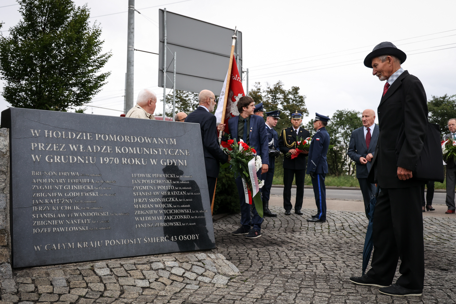 Przed Pomnikiem Ofiar Grudnia ’70 u zbiegu al. Solidarności oraz ul. Janka Wiśniewskiego złożono kwiaty w asyście pocztów sztandarowych, a w uroczystościach wzięło udział ponad 200 osób, wśród których nie brakowało uczestników sierpniowych strajków sprzed 43 lat.